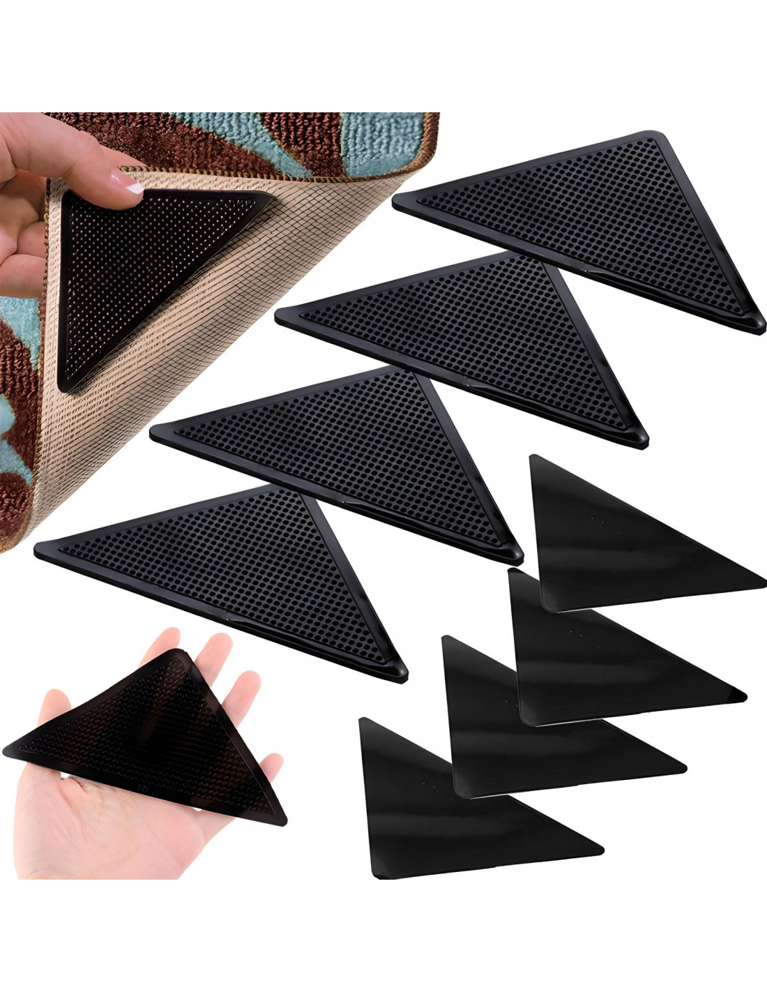 Praktiški RETOO neslystantys kilimėliai efektyviai apsaugo kilimėlius nuo slydimo, glamžymosi ir garbanojimosi. Rinkinį sudaro aštuonios dalys (keturios guminės, keturios dvipusės lipnios juostos), kurios užtikrina kilimėlio stabilumą ant bet kokio paviršiaus – nuo plytelių iki parketo. Idealus sprendimas namams, kuriuose yra augintinių, vaikų ir pagyvenusių žmonių. Kilimėlius lengva naudoti, jie daugkartinio naudojimo ir visiškai nematomi, kai jie pakloti.