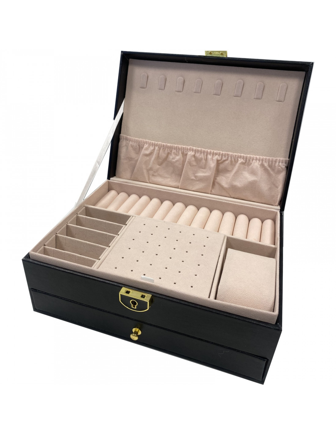 Papuošalų organizatoriaus dėžutė su rakto spyna - juoda