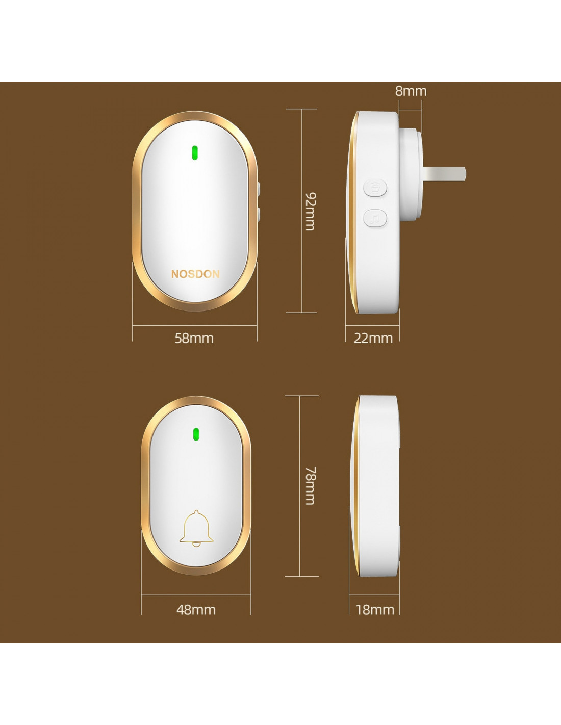 Belaidis vartų durų skambutis, atsparus vandeniui 300 m – balto aukso spalvos