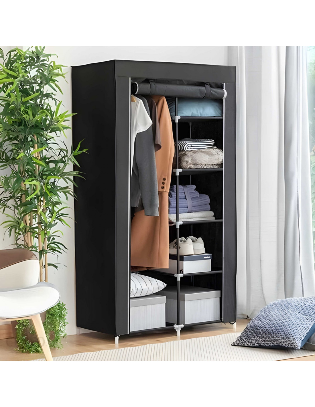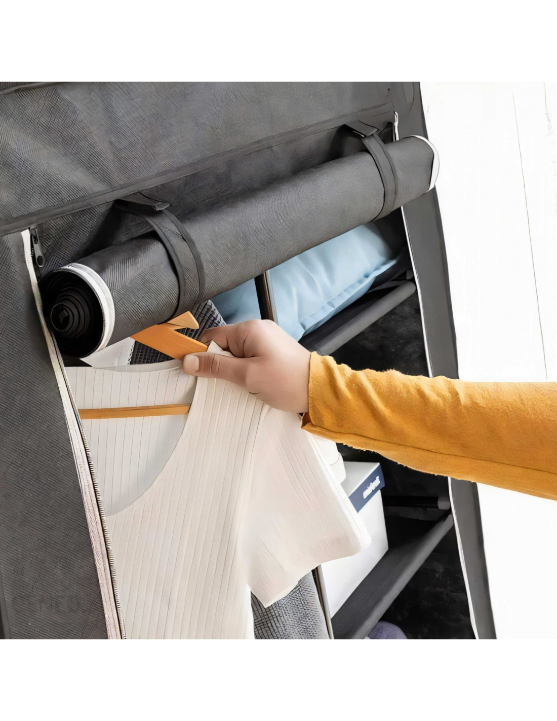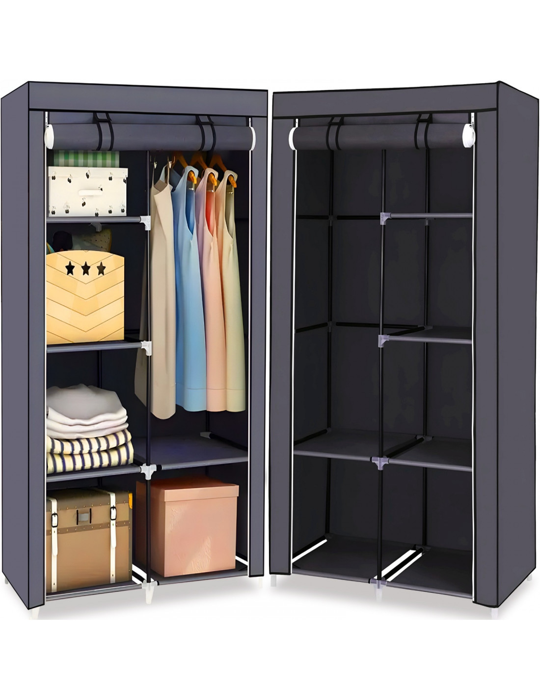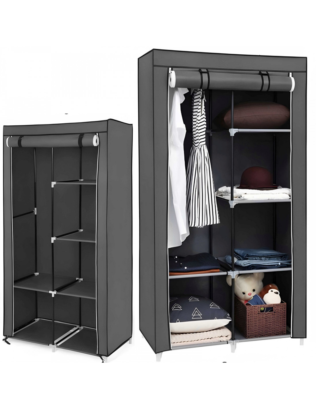 Ši tekstilinė spinta yra praktiškas sprendimas drabužiams ir aksesuarams laikyti. Dėl stabilaus metalinio rėmo ir kvėpuojančio audinio ji yra patvari, funkcionali ir estetiškai patraukli. Su 6 lentynomis , pakabos bėgeliu ir užtrauktuku , ji yra lengvai naudojama, apsaugota nuo dulkių ir drėgmės bei lengvai pasiekiama. Kompaktiški 166 x 87 x 43 cm matmenys leidžia ją pritaikyti įvairiems interjerams, o lengva konstrukcija leidžia ją perkelti ir lengvai surinkti.