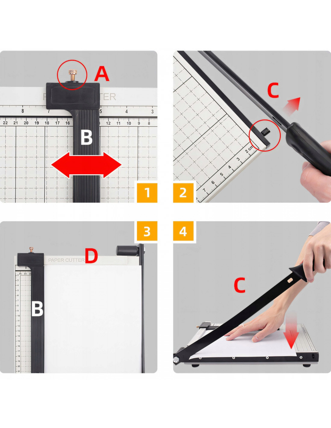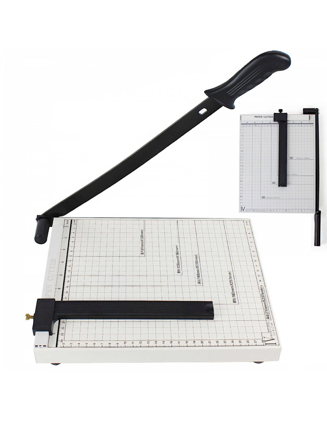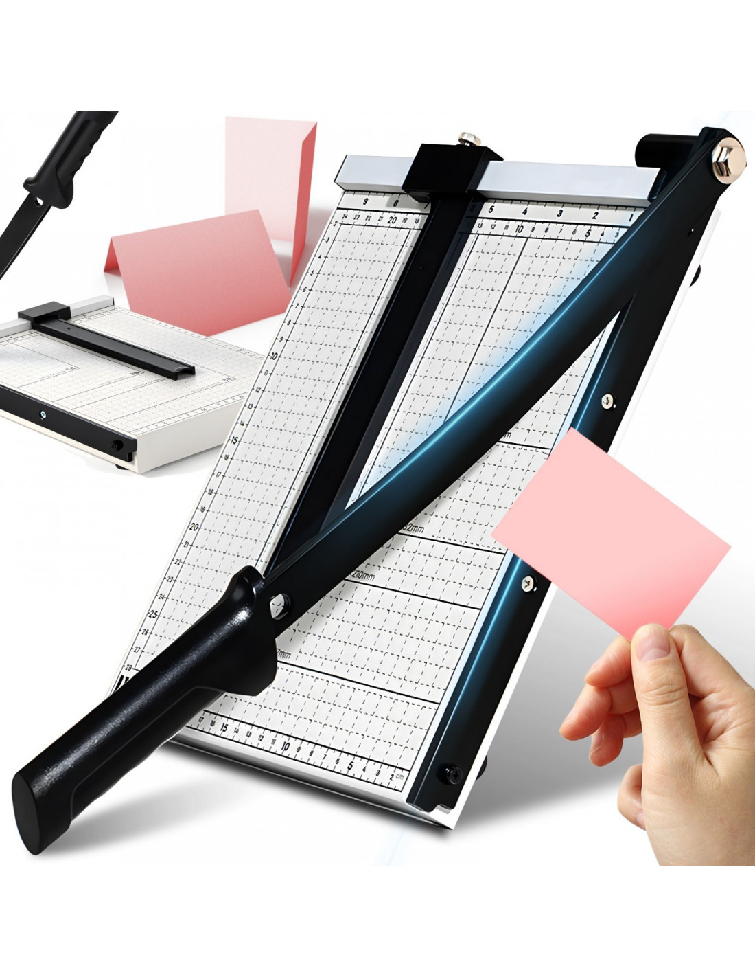 Giljotina yra patikimas įrankis, jau daugelį metų naudojamas biuruose, spaustuvėse, meno ir amatų studijose. Ji leidžia tiksliai ir greitai pjauti popierių, kartoną, storą popieriaus plokštę, foliją ir kitas medžiagas. Pagaminta iš plieno, ji garantuoja patvarumą ir ilgaamžiškumą, o stabilios kojelės užtikrina saugumą ir patogumą. Dėl ergonomiškos rankenos ji taip pat tinka pjauti didesnius lapų kiekius, išlaikant naudotojo komfortą. Aštrūs peiliukai leidžia tiksliai apkarpyti įvairių dydžių popierių – nuo A4 iki mažesnių, taip pat tinka albumų kūrimui ir kitiems kūrybiniams projektams.
