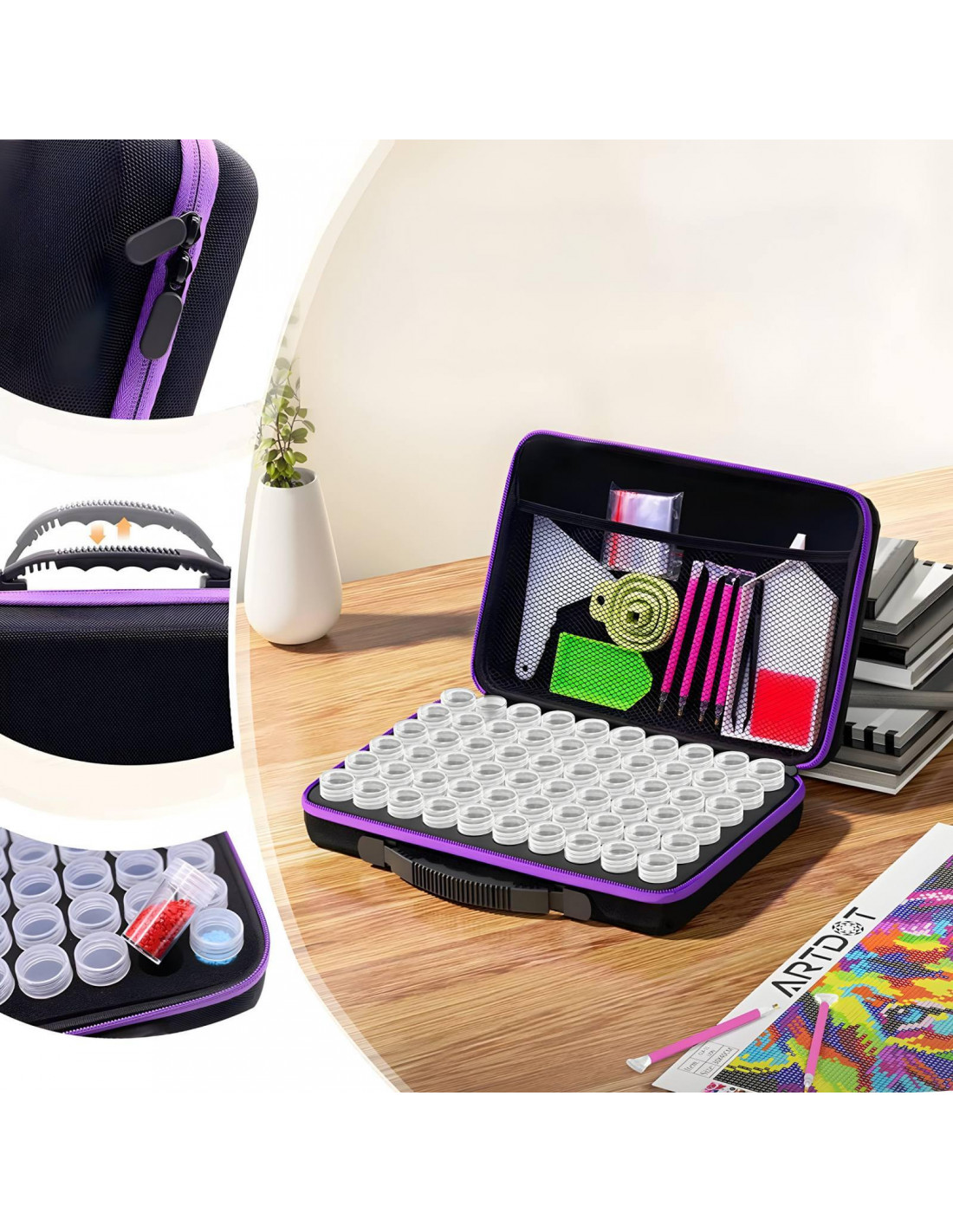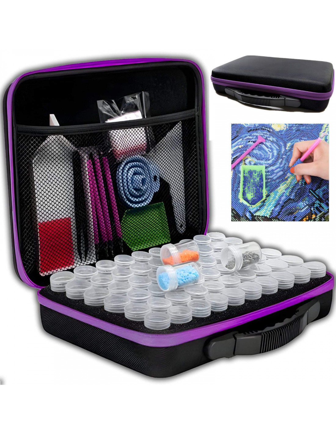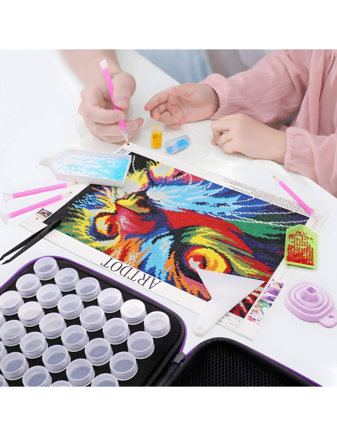 Deimantinis siuvinėjimas , dar žinomas kaip deimantinė tapyba, yra populiari meninės išraiškos forma, leidžianti sukurti tikslius ir įspūdingus vaizdus su cirkoniais. Šis rinkinys skirtas tiek pradedantiesiems, tiek patyrusiems menininkams, jame yra visi reikalingi įrankiai ir priedai praktiškame dėkle.