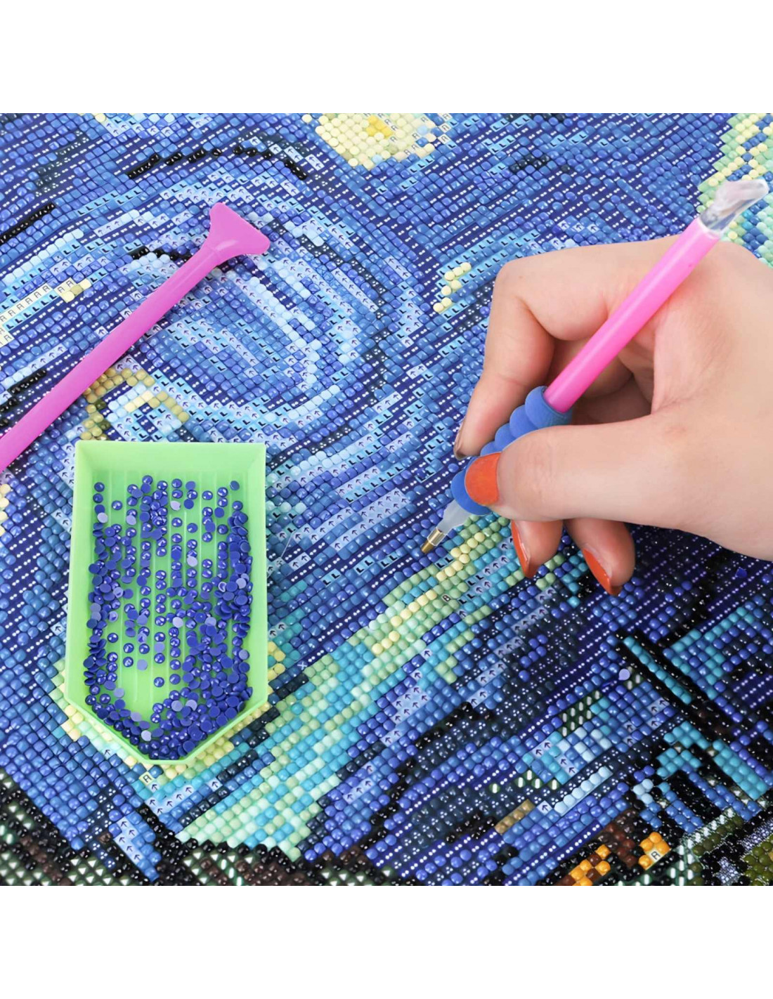 - - Tikslumas ir estetika: pilnas įrankių rinkinys leidžia tiksliai ir estetiškai kurti deimantinio siuvinėjimo darbus.