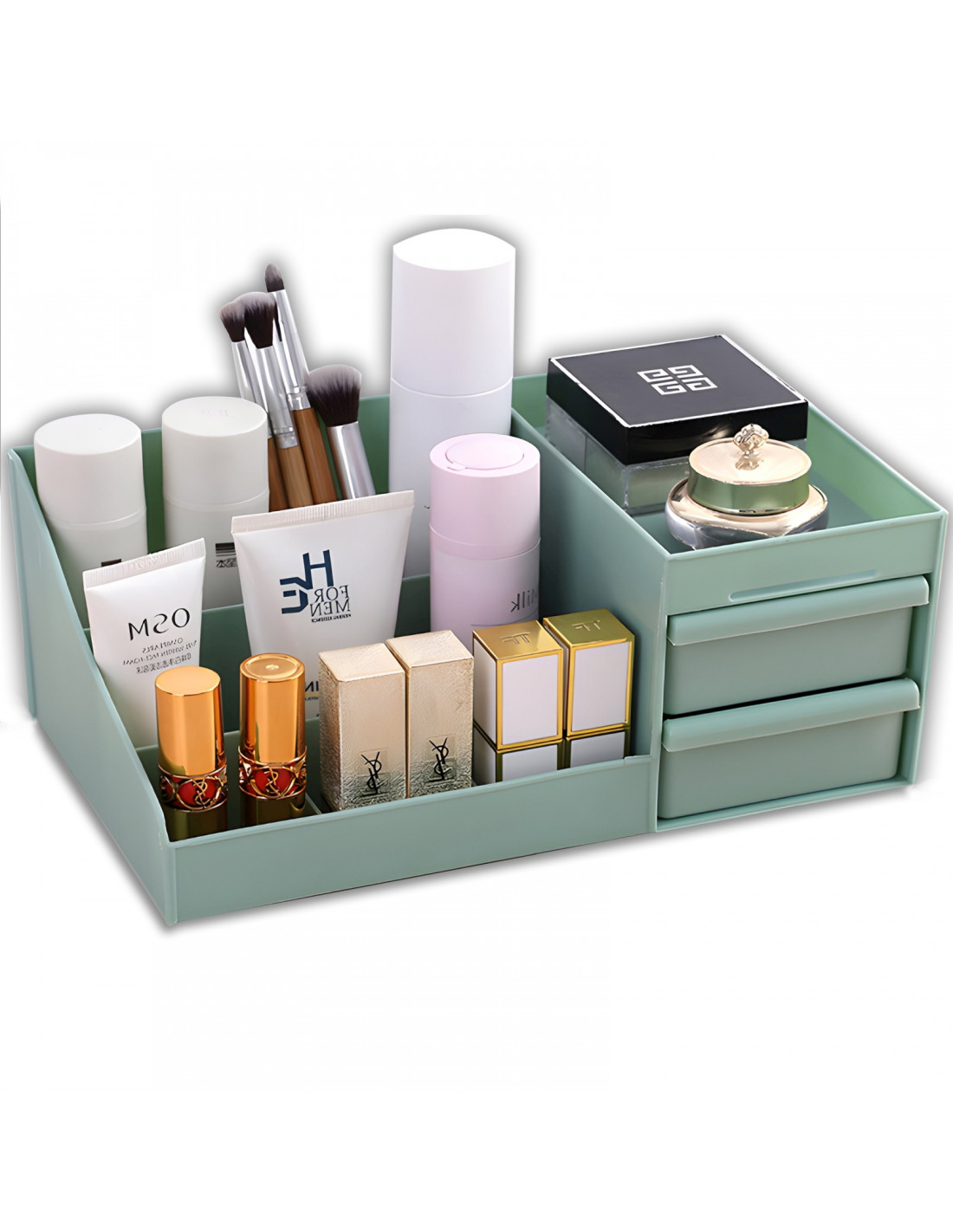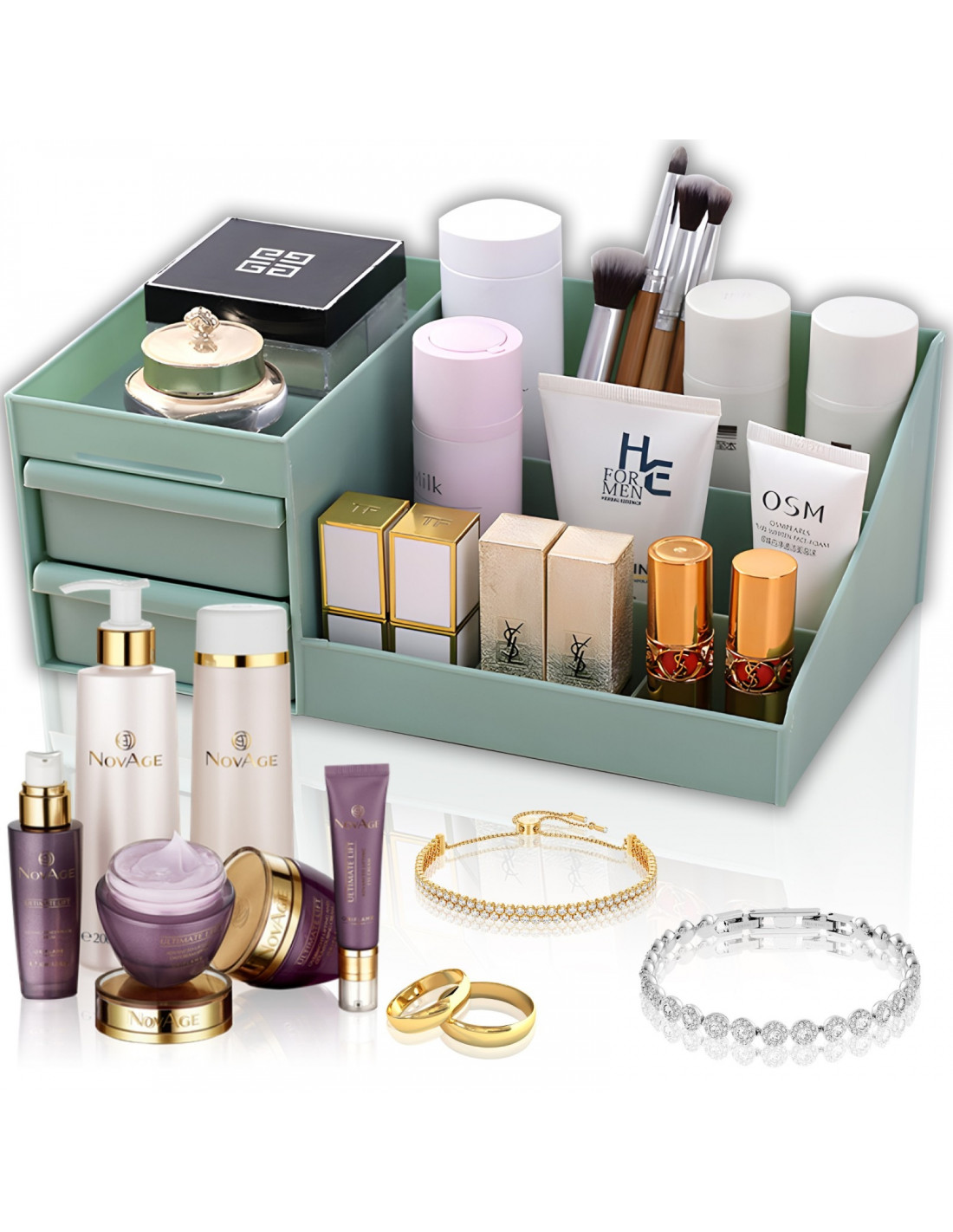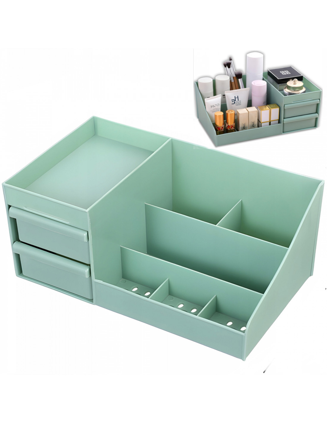 Vonios kambario organizatorius kosmetikai ir papuošalams, 2 stalčiai, 7 skyriai - žalias