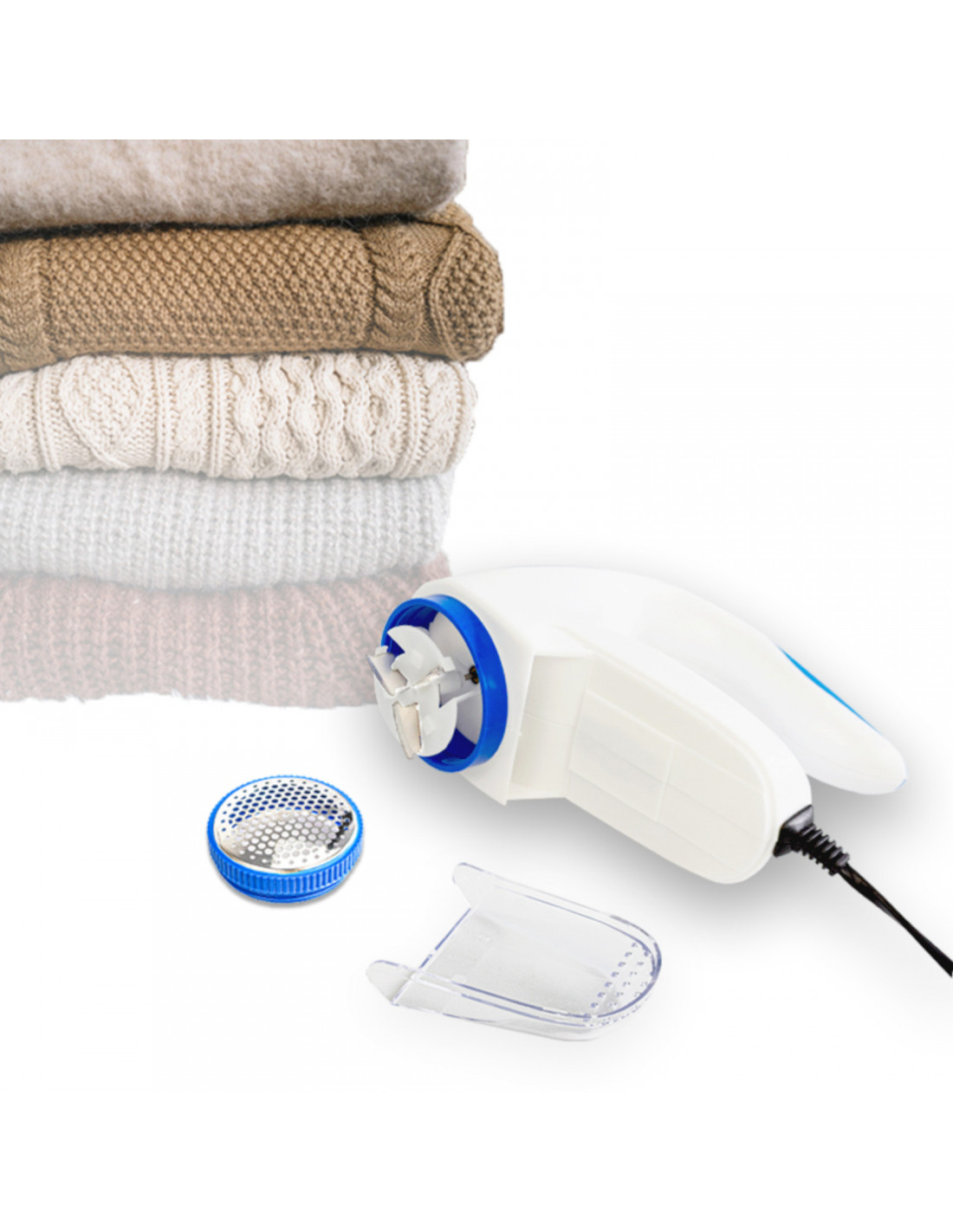 Šis audinių skustuvas yra praktiškas prietaisas, efektyviai pašalinantis susivėlimus ir palaidus siūlus iš visų tipų audinių. Maitinimas iš elektros tinklo užtikrina didelę galią ir efektyvumą, susidorojant su drabužiais, megztiniais, apmušalais, kilimais ir net pliušiniais žaislais. Įrengtas trimis plieniniais peiliukais ir audinių apsaugos sistema, jis garantuoja saugų ir greitą audinių atnaujinimą. Didelis 6,5 cm skersmens darbinis paviršius ir 8000 aps./min. greitis leidžia greitai ir efektyviai pašalinti susivėlimus. Prietaisas yra ergonomiškas, lengvai valomas ir turi permatomą surinkimo talpyklą.