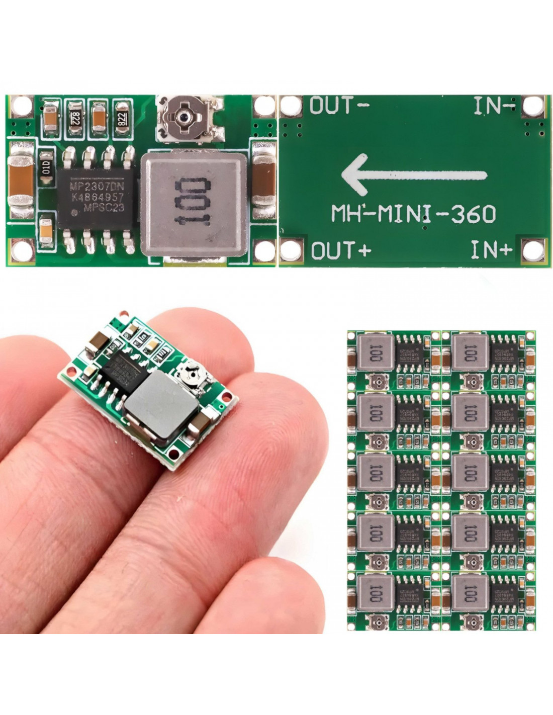 „Mini 360 DC-DC“ modulis yra kompaktiškas žemesnės įtampos keitiklis, idealiai tinkantis elektronikos projektams, kuriems reikalingas stabilus maitinimo šaltinis. Jame įmontuotas MP2307DN lustas, užtikrinantis didelį efektyvumą, tikslų įtampos valdymą ir patikimą veikimą plačiame įėjimo įtampos diapazone. Dėl mažo dydžio jį lengva įdiegti, todėl jis tinka tiek profesionaliems projektams, tiek mėgėjams. Rinkinyje yra 10 modulių.