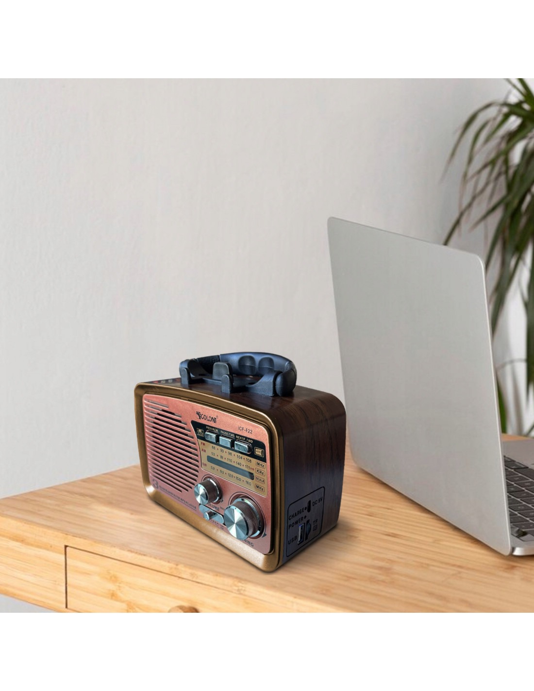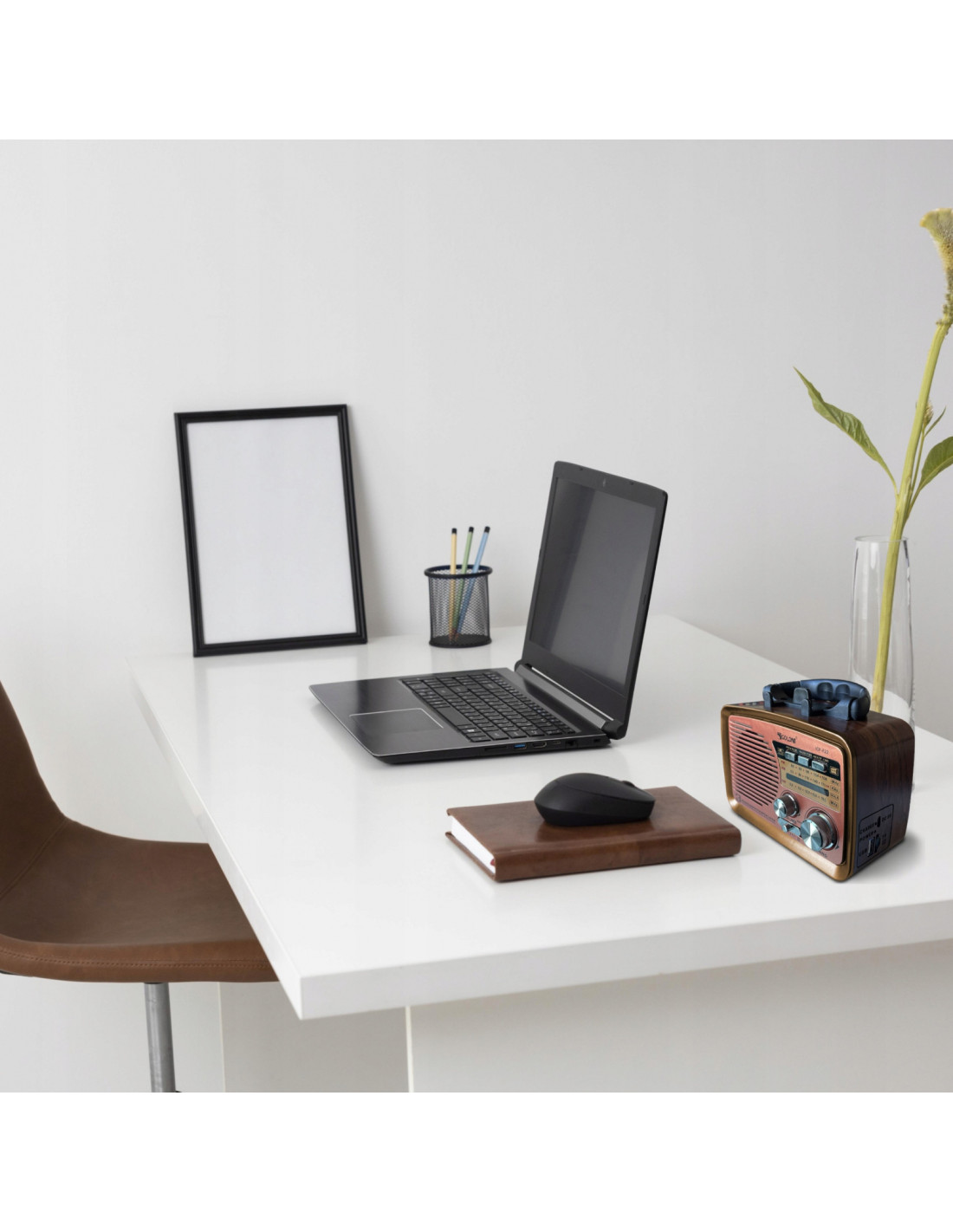 Šis kompaktiškas virtuvės radijas su klasikine retro išvaizda turi modernias atkūrimo funkcijas. Jis palaiko AM, FM ir SW diapazonus, siūlo belaidį „Bluetooth“ ryšį ir groja muziką iš USB atmintinių bei „Micro SD“ kortelių. Maitinamas baterijomis, jis idealiai tinka naudoti virtuvėje, dirbtuvėse, sode ar keliaujant. Lengvas ir patvarus dizainas bei intuityvūs valdikliai leidžia jį naudoti tiek namuose, tiek lauke.