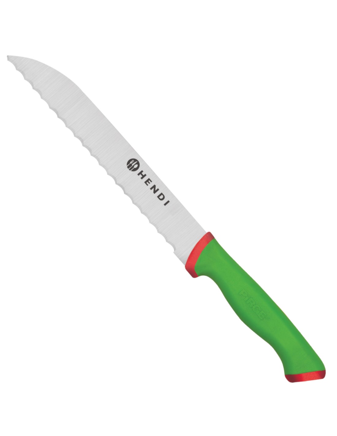 Hendi prekės ženklo duonos peilis pasižymi aukšta kokybe ir universalumu. Jis tiks tiek profesionaliam naudojimui restoranuose, baruose, tiek namų virtuvėje. Peilis pagamintas iš chromo-molibdeno-vanadžio plieno (x50CrMoV15), kurio kietumas yra 56 HRC. Rankena pagaminta iš PPC kopolimero su plastikiniu TPE paviršiumi be kniedžių.