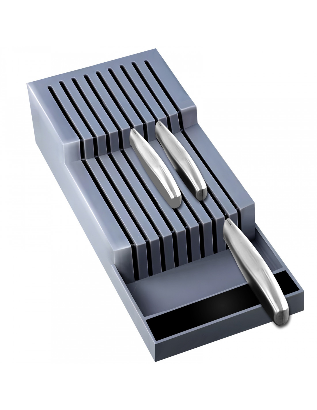 Šis praktiškas virtuvės organizatorius supaprastina peilių ir stalo įrankių laikymą , pašalina netvarką stalčiuose ir padidina saugumą. Dviejų lygių dizainas leidžia patogiai sudėti tiek trumpus, tiek ilgus peilius. Neslystančios kojelės neleidžia įdėklui slysti, o kompaktiškas dydis leidžia optimaliai išnaudoti stalčiaus erdvę. Tai puikus sprendimas bet kuriai virtuvei.