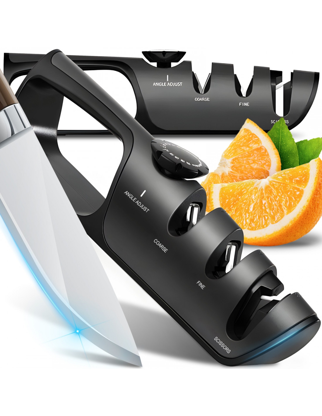 Šis modernus rankinis peilių ir žirklių galąstuvas yra universalus įrankis, leidžiantis greitai atkurti virtuvės įrankių ir kitų tiksliai pagaląstų indų aštrumą. Dėl kompaktiško dydžio ir lengvos konstrukcijos jį lengva laikyti ir naudoti kasdien.