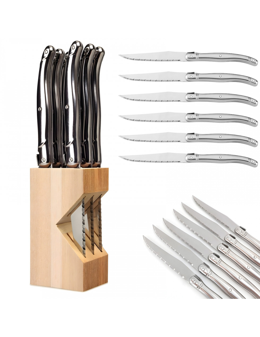 Dantytų virtuvinių peilių rinkinys BBQ kepsniams bloke - 6 vnt.