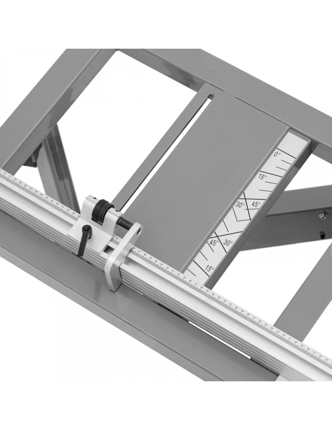 - - Stumdomas stalo pjūklo diskas su slankiojančiu vežimėliu pjovimui 90 laipsnių kampu 80 mm gylyje ir 45 laipsnių kampu 56 mm gylyje,