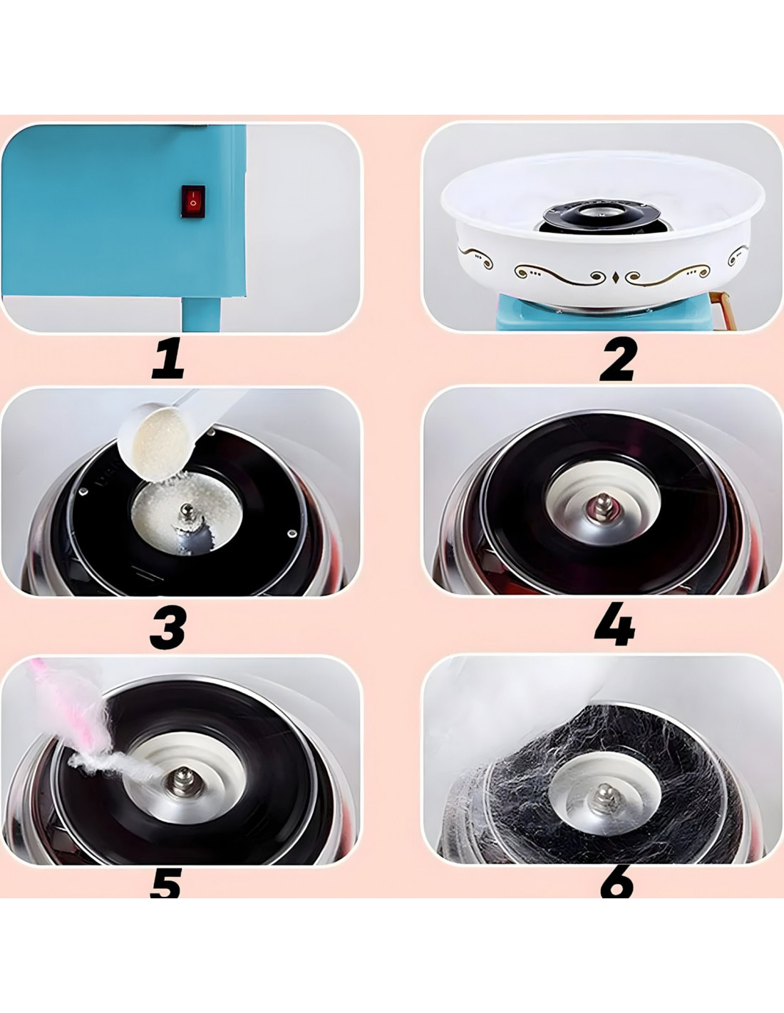Cukraus vatos aparatas – tai funkcionalus mėlynos ir baltos spalvos prietaisas, puikiai tinkantis vakarėliams, šeimos susibūrimams ir gimtadieniams. Dėl kompaktiško dydžio ir 450–550 W galios jis greitai paruošia gardžią cukraus vatą, o neslystančios prisisiurbiančios kojelės užtikrina stabilumą veikimo metu. Prietaisas pagamintas iš aukštos kokybės medžiagų – nerūdijančio plieno dubuo ir tvirtas plastikinis korpusas garantuoja ilgaamžiškumą ir atsparumą pažeidimams. Valdymas paprastas ir intuityvus, o komponentus lengva valyti ir plauti indaplovėje.