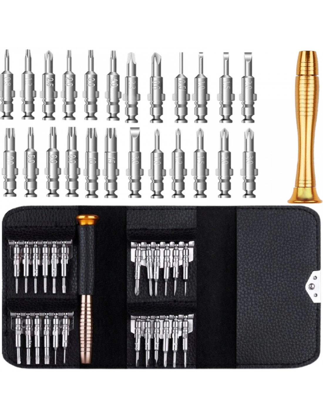 Praktiškas RETOO 25 viename tiksliųjų atsuktuvų rinkinys yra universalus įrankis namų, elektronikos ir mechaniniams remonto darbams. Rinkinį sudaro 24 keičiami antgaliai ir patogi rankena , visa tai sudėta į tvirtą, užrakinamą dėklą, kad būtų lengva laikyti ir organizuoti. Dėl plataus antgalių asortimento ir magnetinio tvirtinimo rinkinys tinka bet kokiai situacijai, kurioje reikalingas tikslumas ir kruopštumas.