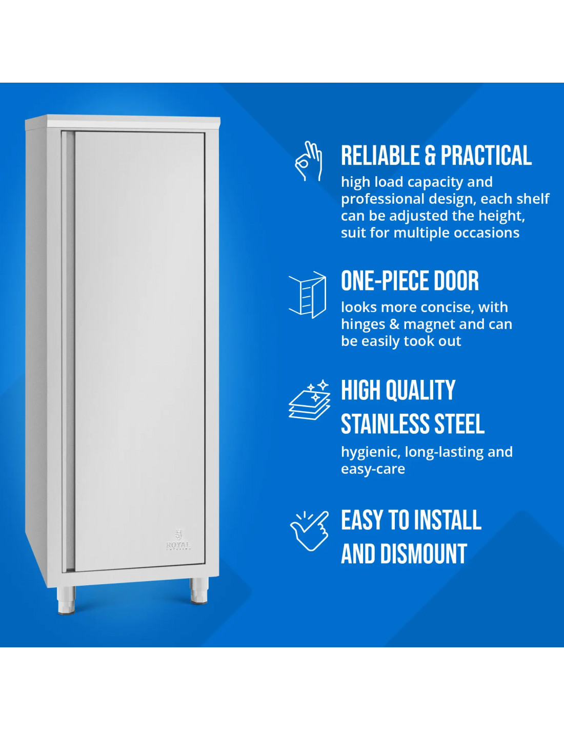 Ši „Royal Catering“ nerūdijančio plieno spintelė, kurios keliamoji galia siekia iki 400 kg, yra tvirtas baldas indams ir įrangai laikyti profesionaliose maitinimo įstaigose. Jos išmanus dizainas su varstomomis durelėmis su magnetiniu skląsčiu ir trimis reguliuojamo aukščio lentynomis , kurių kiekvienos matmenys – 591 x 606 x 35 mm, o keliamoji galia – 100 kg , užtikrina patogų ir higienišką virtuvės reikmenų laikymą. Pagaminta iš aukštos kokybės nerūdijančio plieno, ši maitinimo spintelė yra lengvai valoma ir patvari, todėl atlaikys kasdienio naudojimo sunkumus. Idealiai tinka restoranams ir maitinimo įmonėms, ji derina funkcionalumą ir ilgaamžiškumą, išlaikant profesionalią ir elegantišką išvaizdą. Spintelę galima greitai surinkti ir išardyti vos keliais paprastais žingsniais, todėl ją lengva pastatyti optimalioje vietoje arba perkelti pagal poreikį. Be to, reguliuojamo aukščio kojelės, kurių aukštis gali būti iki 2 cm, užtikrina stabilią padėtį ant įvairių, net ir nelygių paviršių. Dugnas yra 15 cm aukštyje nuo grindų, todėl lengva valyti po indų lentyna, todėl lengviau laikytis higienos standartų maitinimo pramonėje.