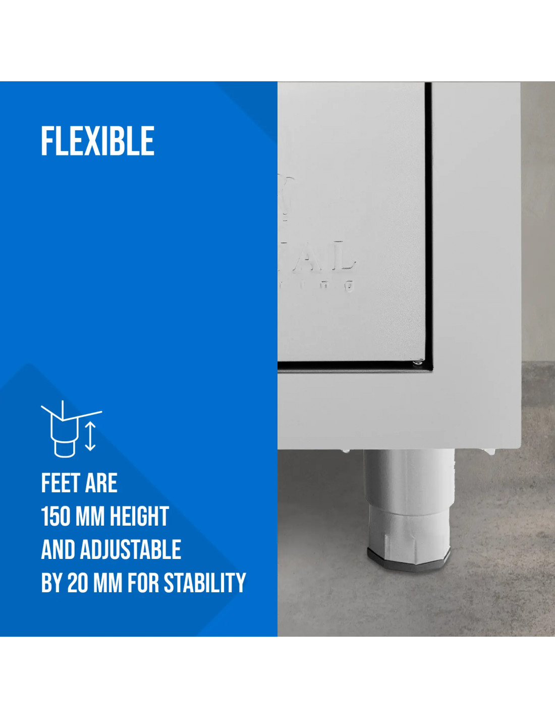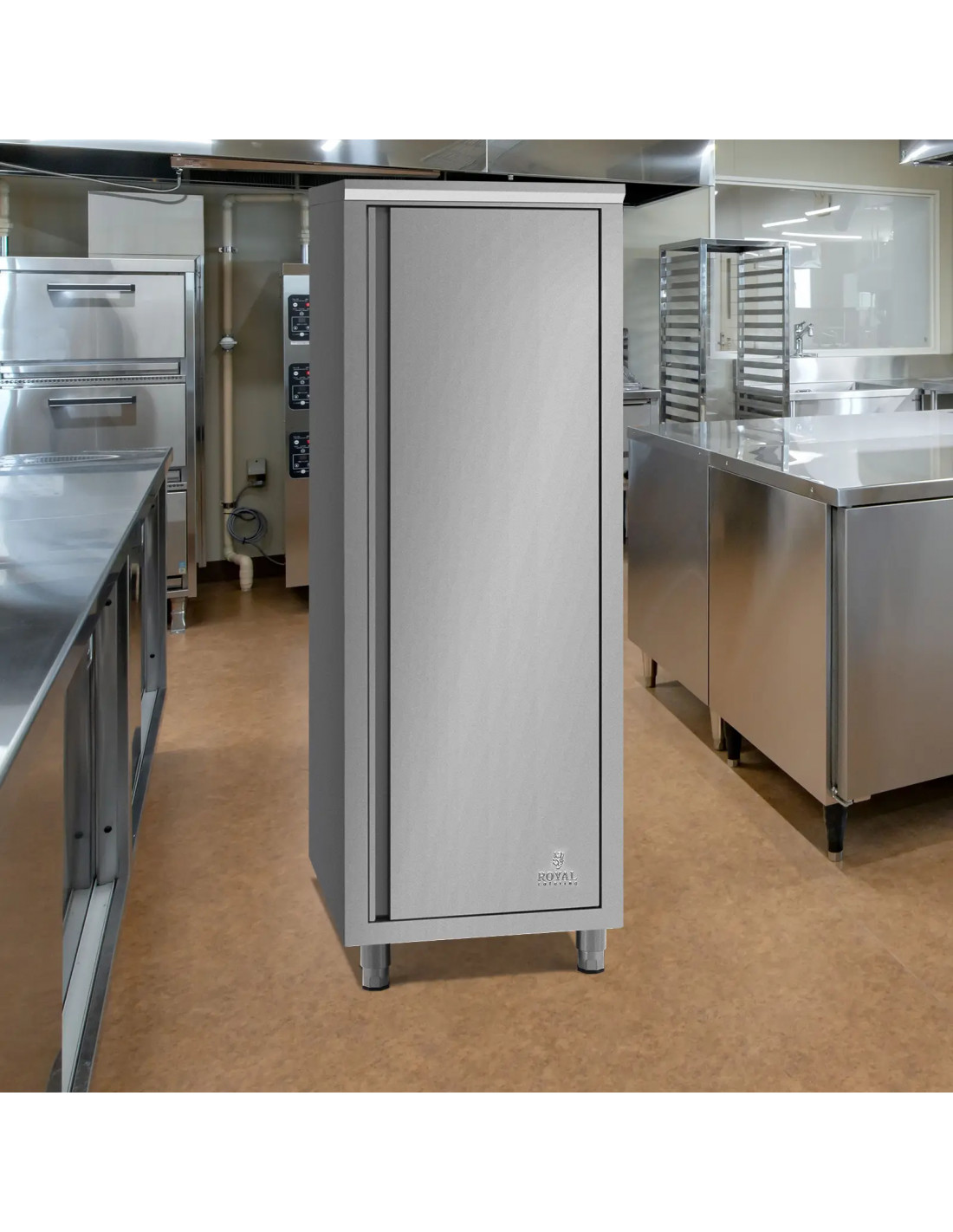 Ši „Royal Catering“ nerūdijančio plieno spintelė, kurios keliamoji galia siekia iki 400 kg, yra tvirtas baldas indams ir įrangai laikyti profesionaliose maitinimo įstaigose. Jos gerai apgalvotas dizainas su varstomomis durelėmis su magnetiniu skląsčiu ir trimis reguliuojamomis lentynomis , kurių kiekvienos matmenys – 595 x 506 x 35 mm , o keliamoji galia – 100 kg , užtikrina patogų ir higienišką virtuvės reikmenų laikymą. Pagaminta iš aukštos kokybės nerūdijančio plieno, ši maitinimo spintelė yra lengvai valoma ir patvari, todėl atlaikys kasdienio naudojimo sunkumus. Idealiai tinka restoranams ir maitinimo įmonėms, ji derina funkcionalumą ir ilgaamžiškumą, išlaikydama profesionalią ir elegantišką išvaizdą. Spintelę galima greitai surinkti ir išardyti vos keliais paprastais žingsniais, todėl ją lengva pastatyti optimalioje vietoje arba perkelti pagal poreikį. Be to, 2 cm aukščio reguliuojamo aukščio kojelės leidžia rasti stabilią padėtį ant įvairių, net ir nelygių paviršių. Dugnas yra 15 cm aukštyje nuo grindų, todėl lengva valyti po indų lentyna, todėl lengviau laikytis higienos standartų maitinimo pramonėje.