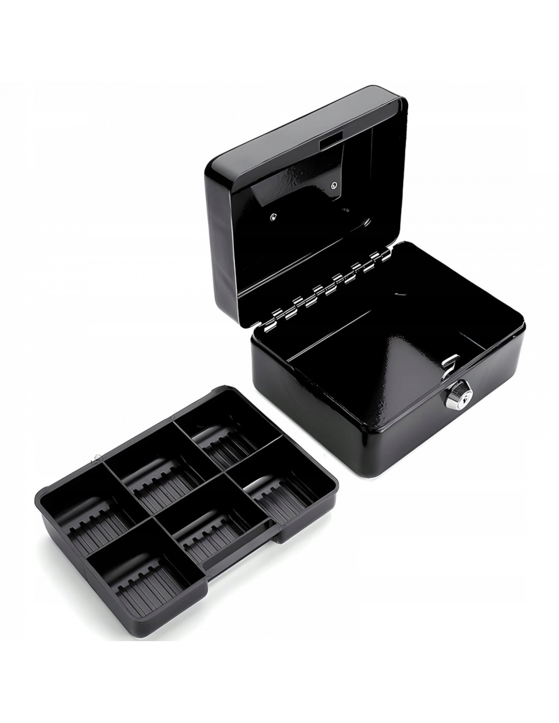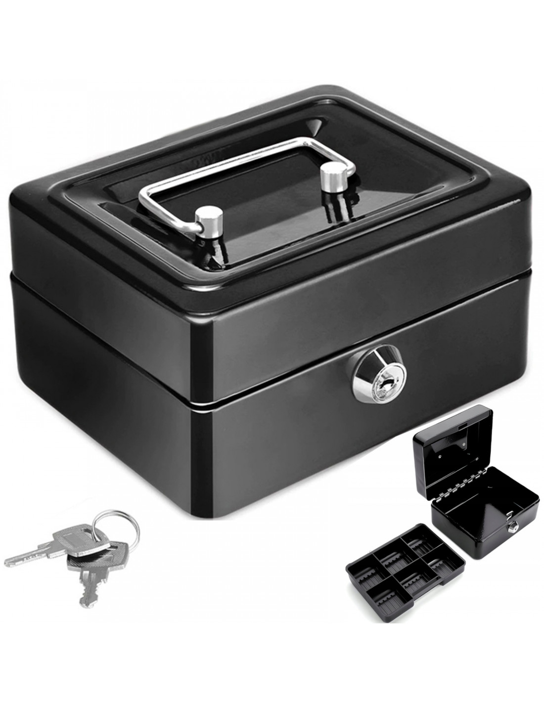 Ši metalinė dėžutė pinigams ir vertybėms – elegantiškas ir patvarus sprendimas banknotams, monetoms, dokumentams ir papuošalams laikyti. Pagaminta iš presuoto, milteliniu būdu dažyto plieno, ji yra atspari pažeidimams ir ilgaamžė. Ji turi tvirtą cilindrinę spyną su dviem raktais, tvirtus vyrius ir chromuotą rankeną, taip pat išimamą įdėklą su monetų skyreliais ir papildomą paslėptą skyrių. Universalus, nesenstantis dizainas puikiai tinka tiek namams, tiek biurui.