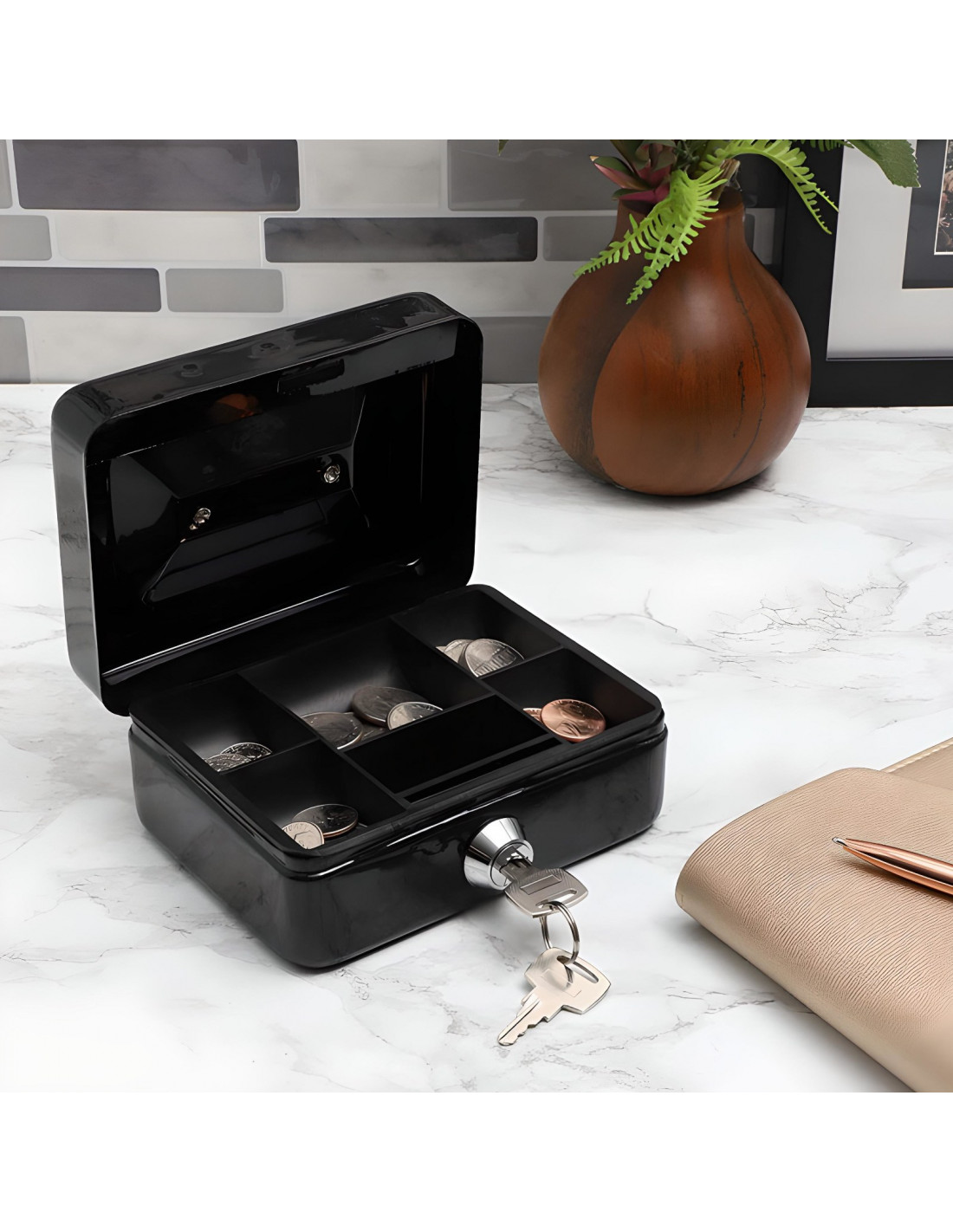 - - Metalinė dėžutė – puikiai tinka pinigams, raktams, dokumentams ir kitiems vertingiems daiktams laikyti