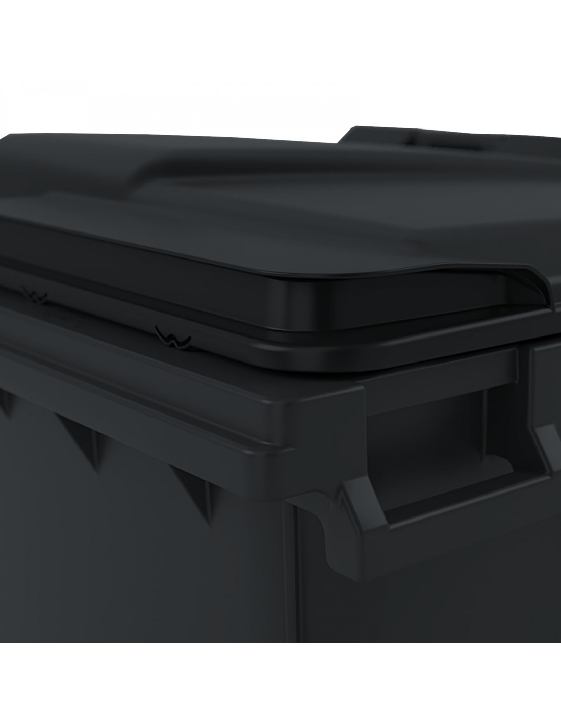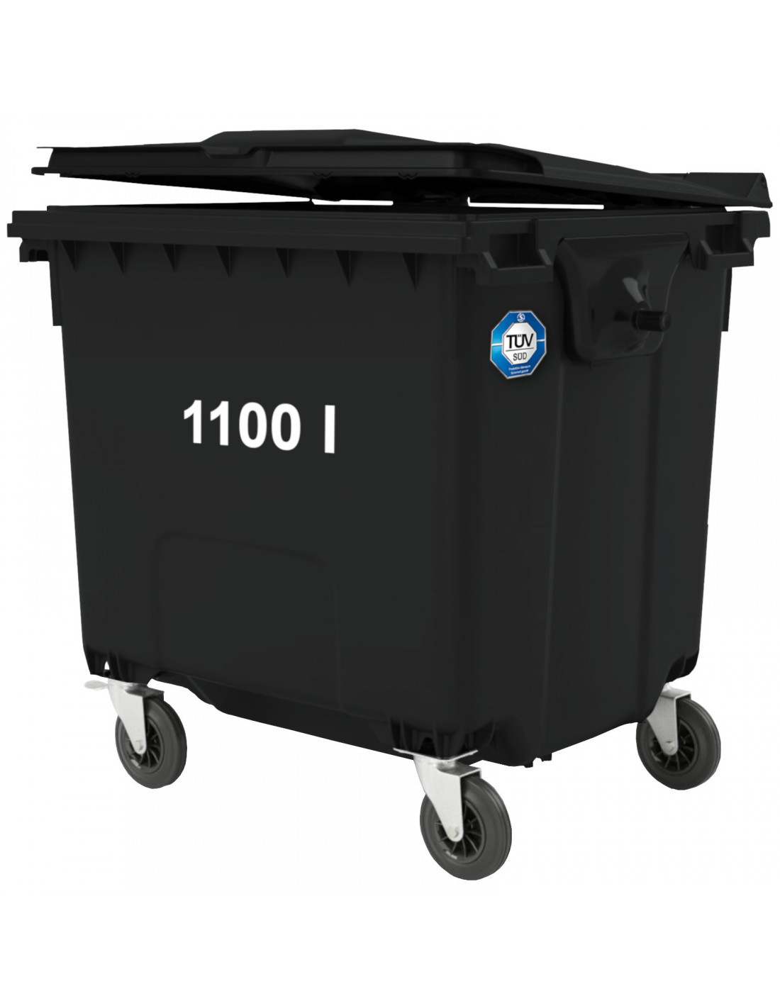 Aukštos kokybės 1100 litrų talpos komunalinių atliekų surinkimo konteineris . Pagamintas iš didelio tankio polietileno, atsparus vandeniui ir UV spinduliams.