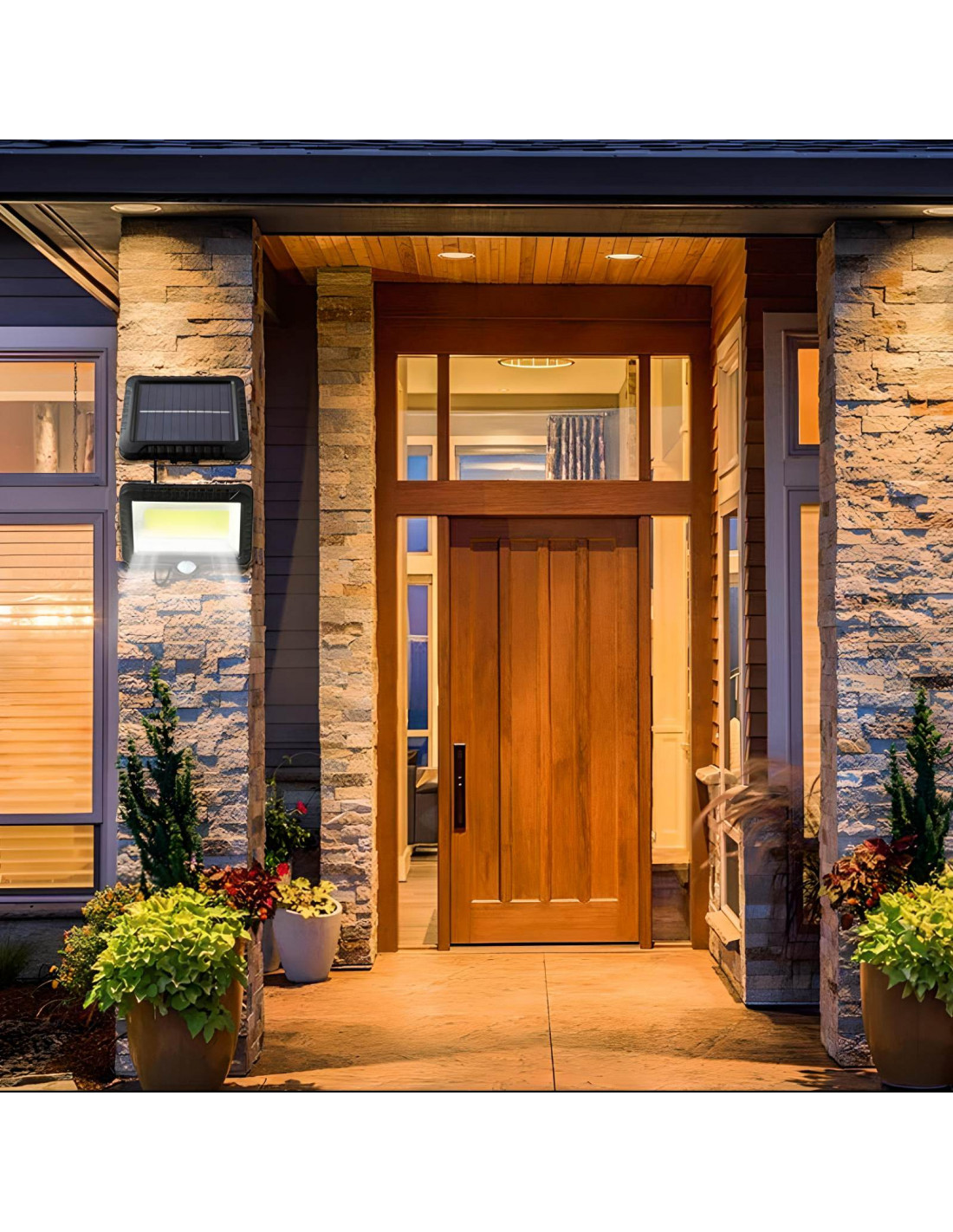 Šis efektyvus ir energiją taupantis saulės energija varomas šviestuvas su 100 COB LED lempučių yra puikus šviesos šaltinis jūsų kiemui, sodui, įvažiavimui, garažui ar sklypui apšviesti. Įrengtas sutemų ir PIR judesio jutikliu , jis automatiškai įsijungia sutemus ir aptikus judesį. Pagamintas iš patvaraus ABS plastiko, jis turi IP67 apsaugos lygį , užtikrinantį atsparumą lietui, sniegui ir aukštai temperatūrai. Dėl saulės baterijos ir baterijos jis veikia be maitinimo jungties.