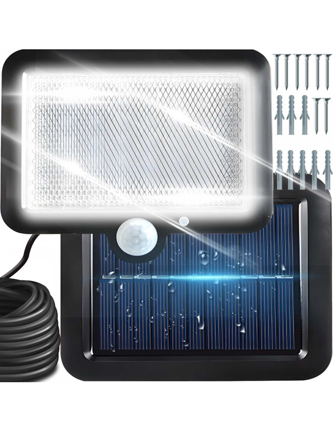 Šis 108 diodų, 2200 W galios LED saulės šviestuvas yra efektyvus ir ekologiškas apšvietimo šaltinis, idealiai tinkantis sodams, garažams, pavėsinėms, statybvietėms ir automobilių stovėjimo aikštelėms. Pagamintas iš patvaraus, oro sąlygoms atsparaus ABS plastiko , jis pasižymi lanksčiu saulės baterijų montavimu dėl 5 metrų ilgio laido. Įrengtas prieblandos ir judesio jutiklis bei trys veikimo režimai, todėl jis užtikrina automatinį ir energiją taupantį apšvietimą valandų valandas.