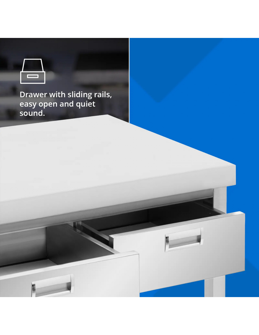 - - Nerūdijančio plieno darbo stalas su stalčiais