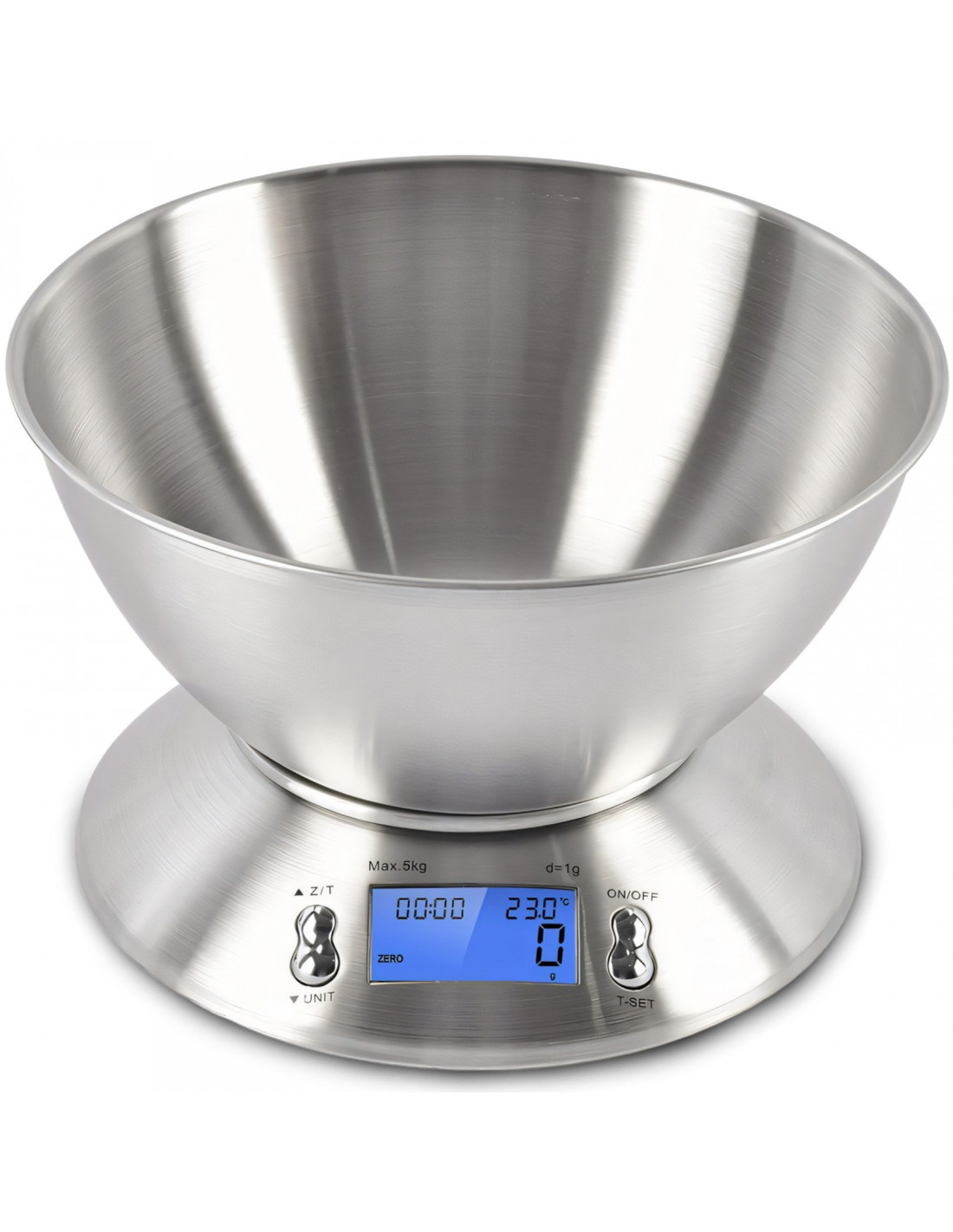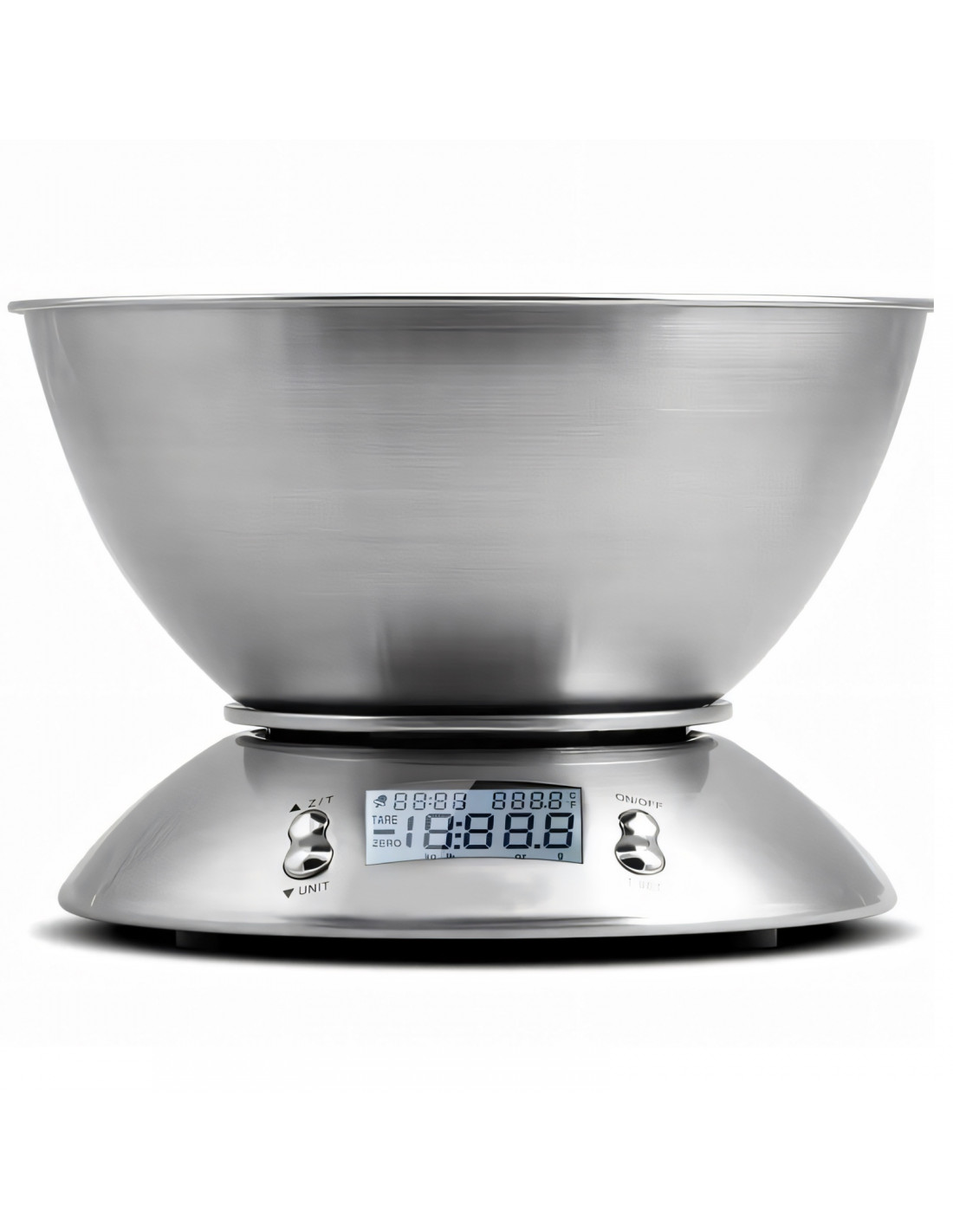 Elektroninės virtuvės svarstyklės su dubeniu ir termometru, PLIENINĖS, 1,8 l, 1-5000 g / 1 g