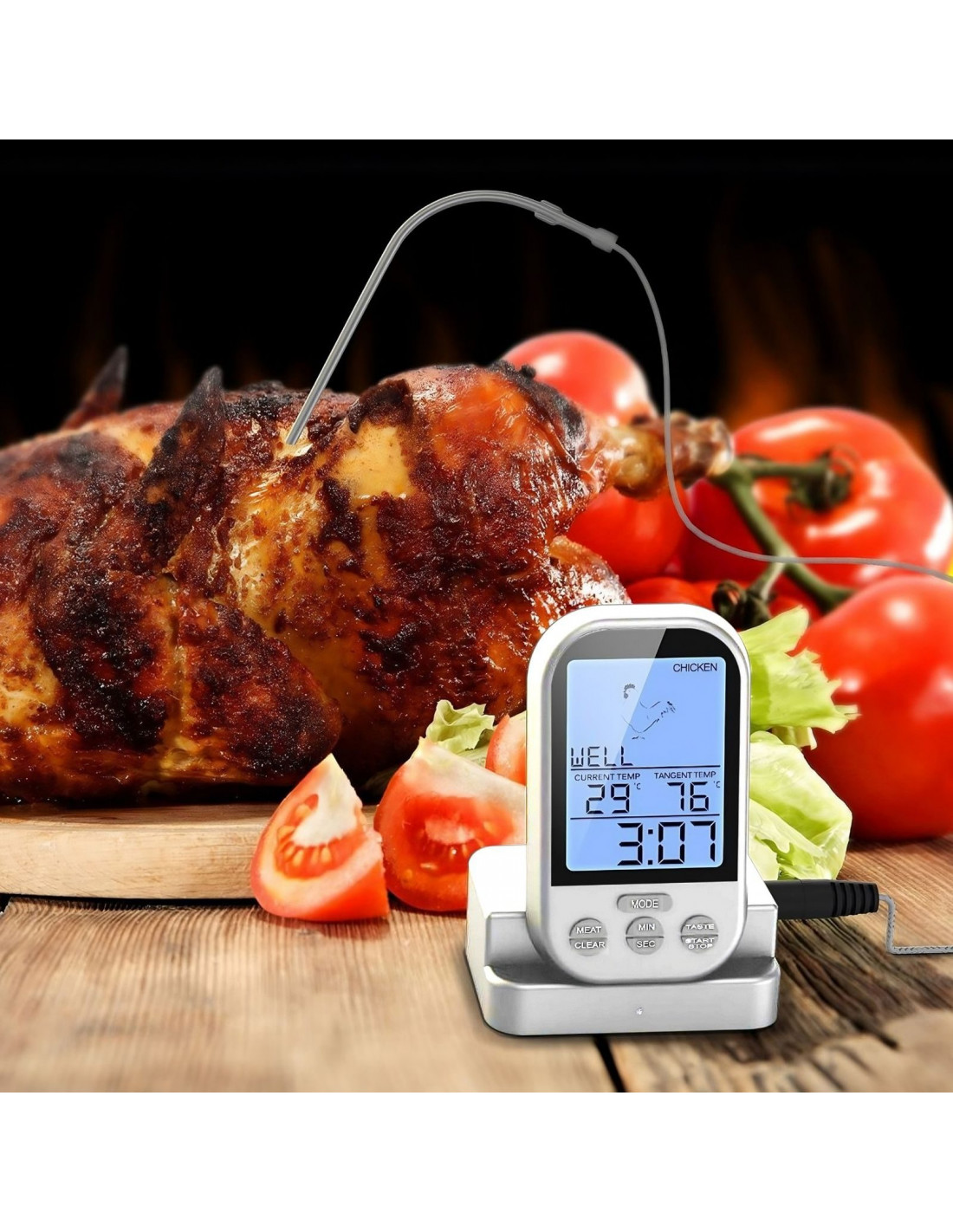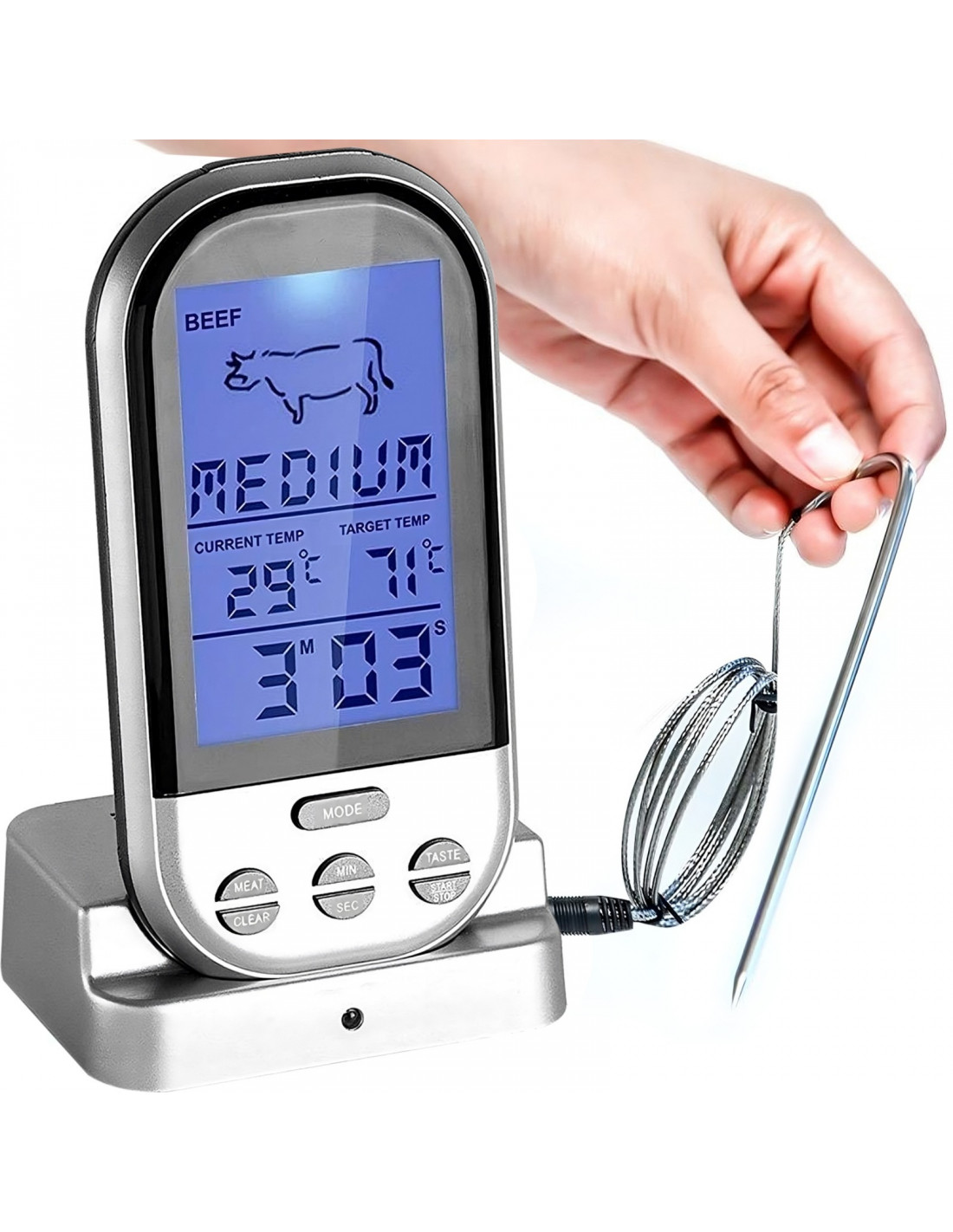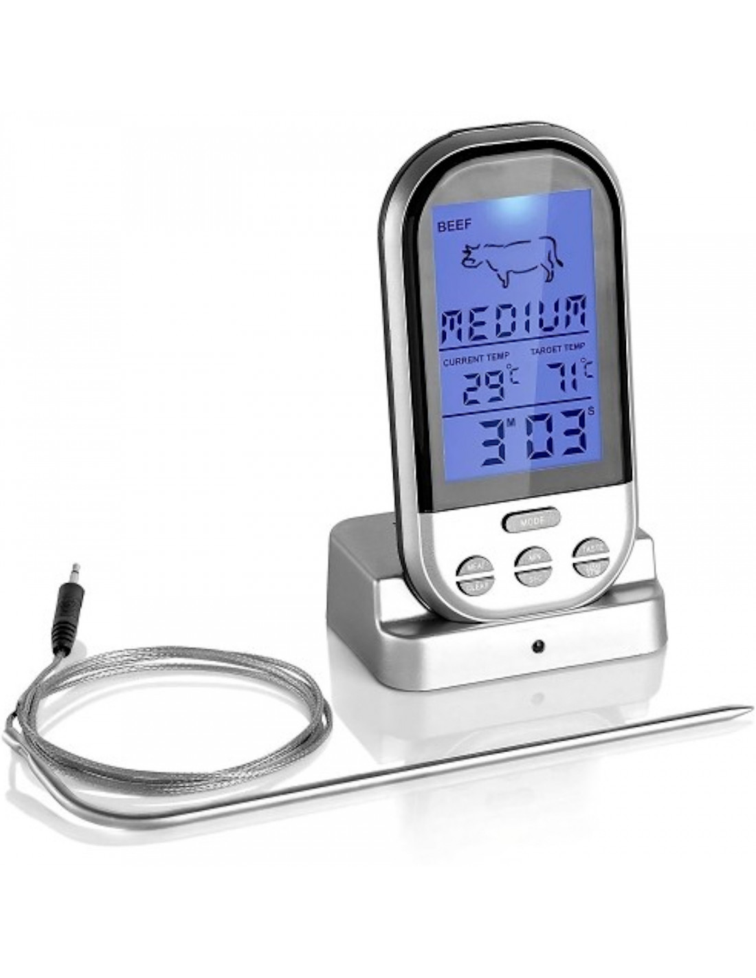 Šis novatoriškas mėsos termometras yra nepakeičiamas virtuvės pagalbininkas, leidžiantis tiksliai kontroliuoti temperatūrą kepimo, kepimo ir grilio metu. Dėl šiuolaikinių technologijų prietaisas atlieka tikslius matavimus ir įvairius režimus, pritaikytus mėsos rūšiai, todėl tiek mėgėjams, tiek profesionalams lengva paruošti tobulus patiekalus.