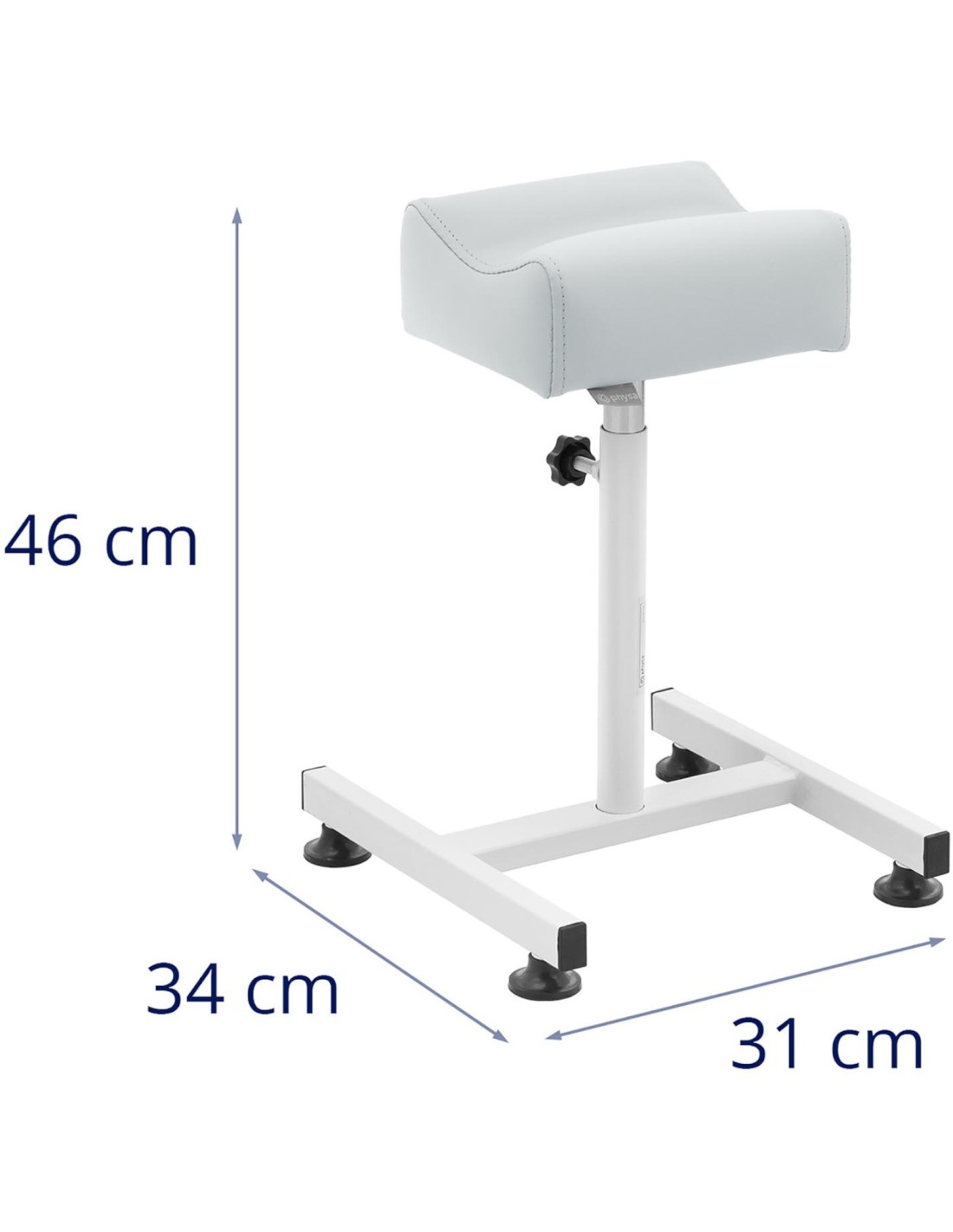 PHYSA pedikiūro pėdų atrama yra patogi, praktiška ir tuo pat metu stabili. Pėdų atramos pagalvėlės matmenys 24 x 22 cm, užpildyti aukštos kokybės porolonu, aptraukta elegantiška dirbtine oda. Aukščio reguliavimas nuo 470 iki 670 mm yra paprastas ir tereikia atsukti po atrama esantį varžtą. Pedikiūro taburetė yra patvari ir patvari net naudojant kasdien, nes jose naudojamos aukštos kokybės medžiagos, tokios kaip plienas ir dirbtinė oda. Tvirta konstrukcija leidžia krauti iki80 kg, o neslystanti guma ant pėdų užtikrina patikimą pagrindą.