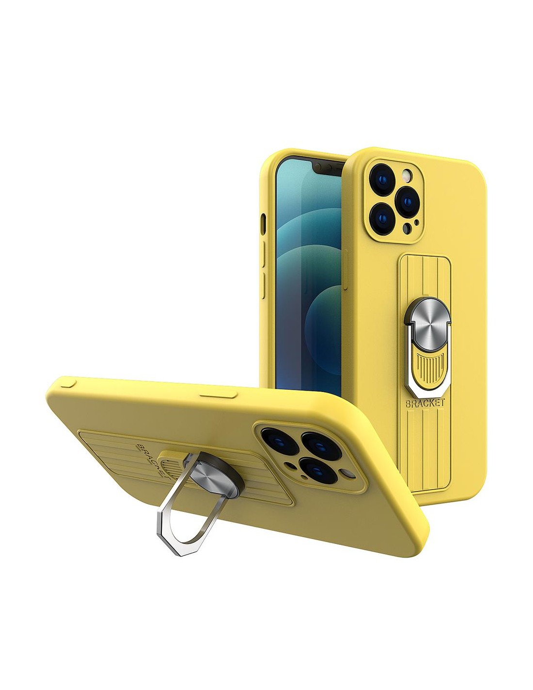 Ring Case silikoninis dėklas su pirštų laikikliu ir stovu iPhone 11 Pro geltonas