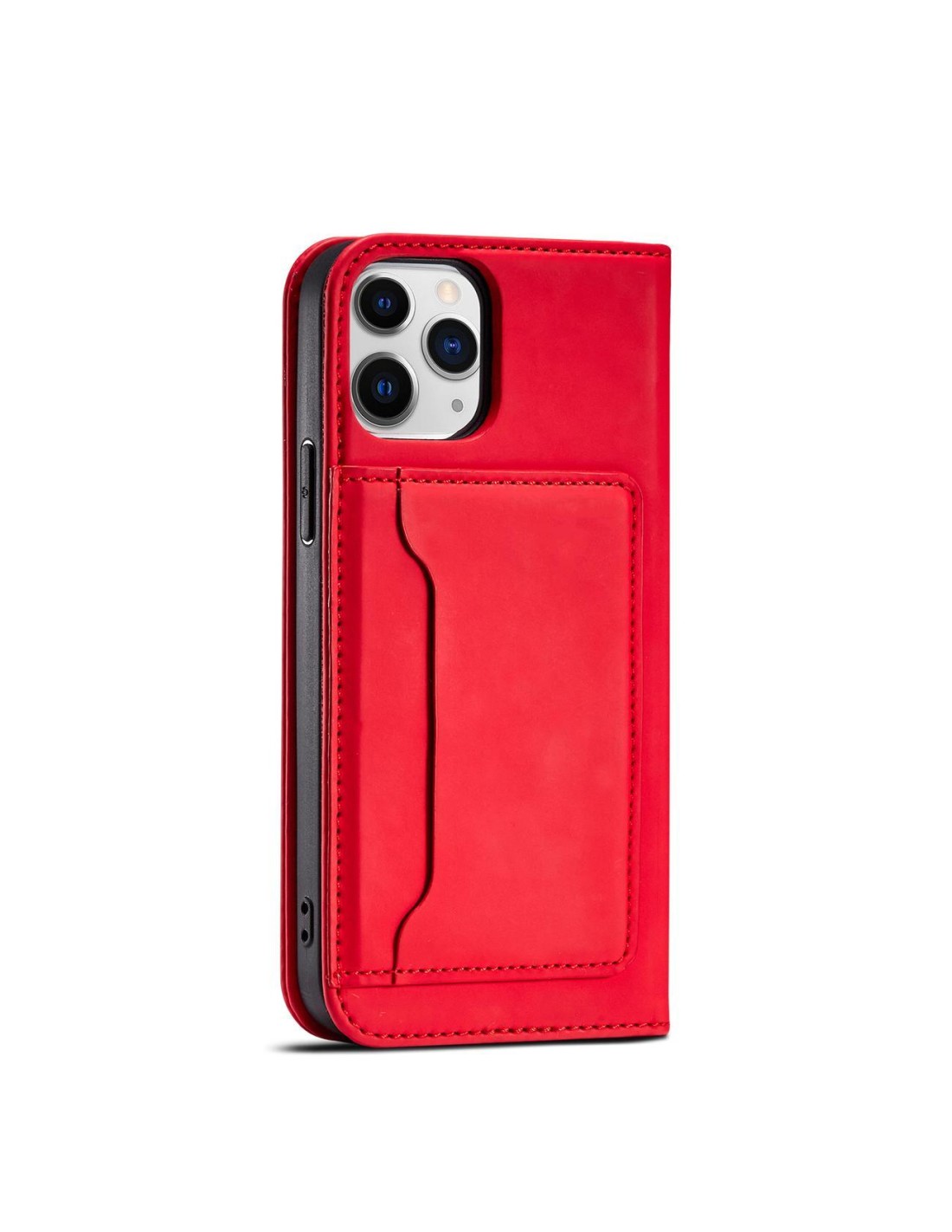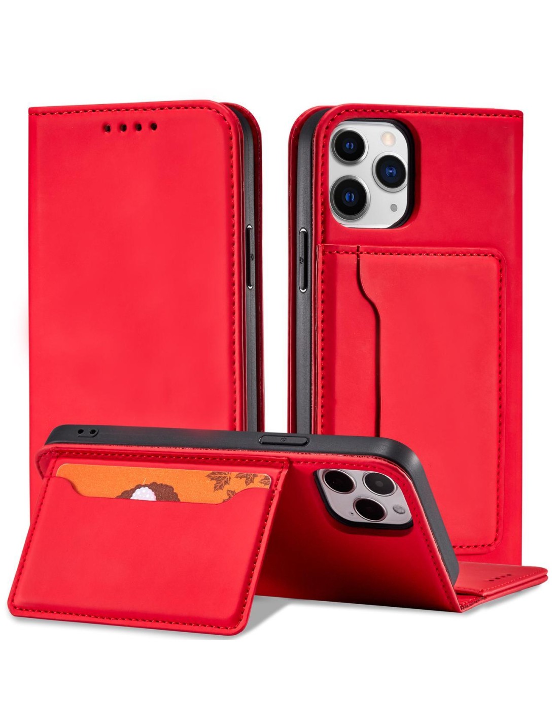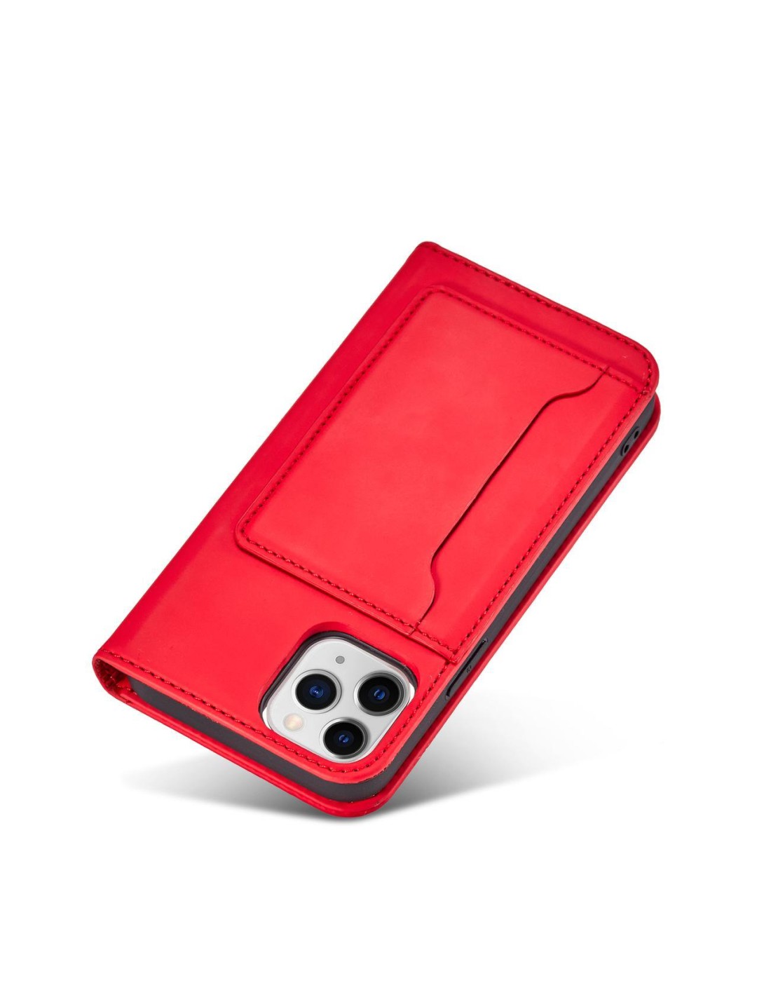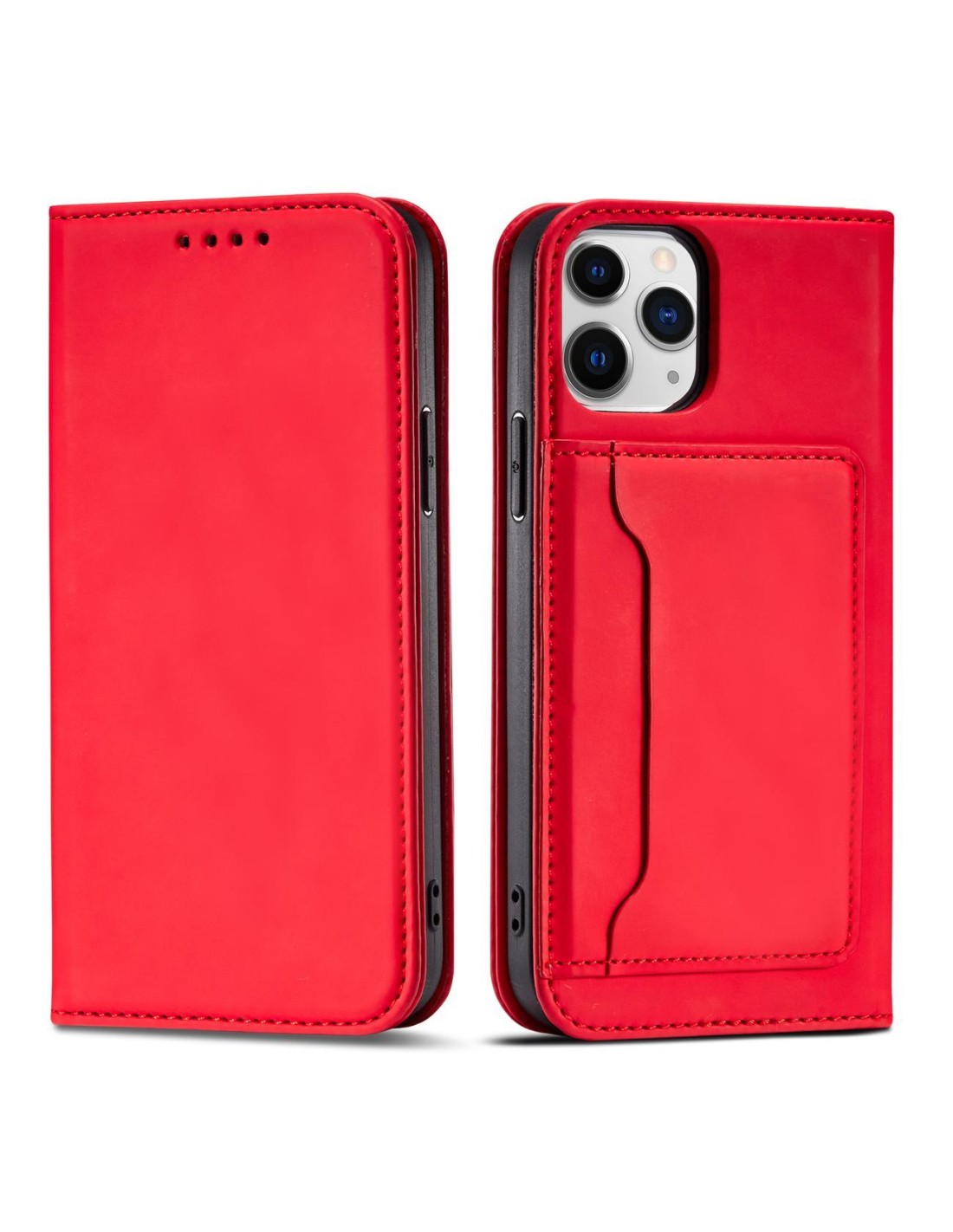 Magnetinis kortelės dėklas iPhone 12, dangtelis, kortelių piniginė, kortelių stovas, raudonas