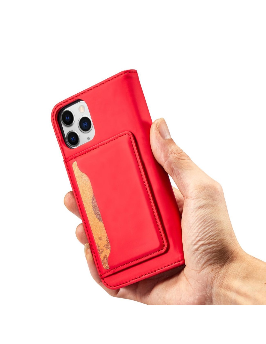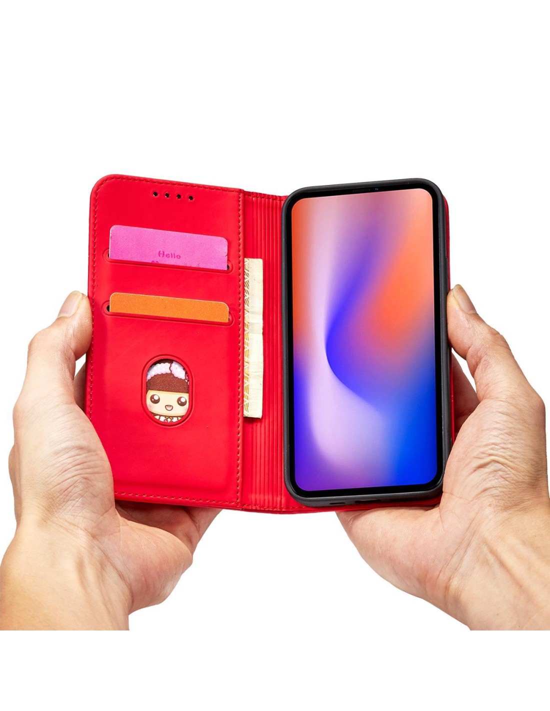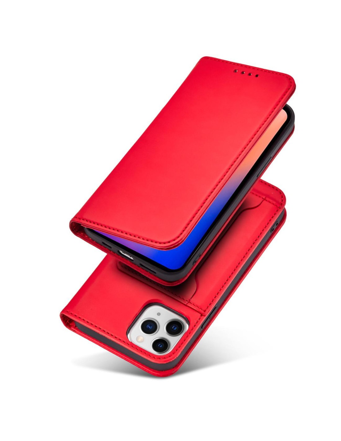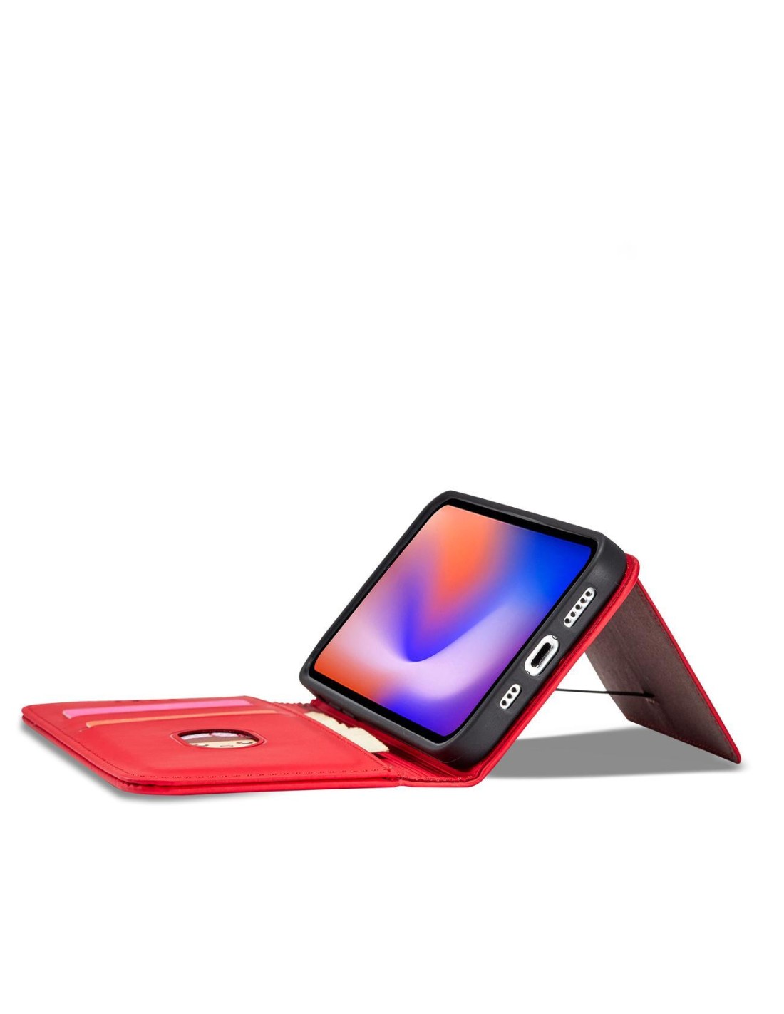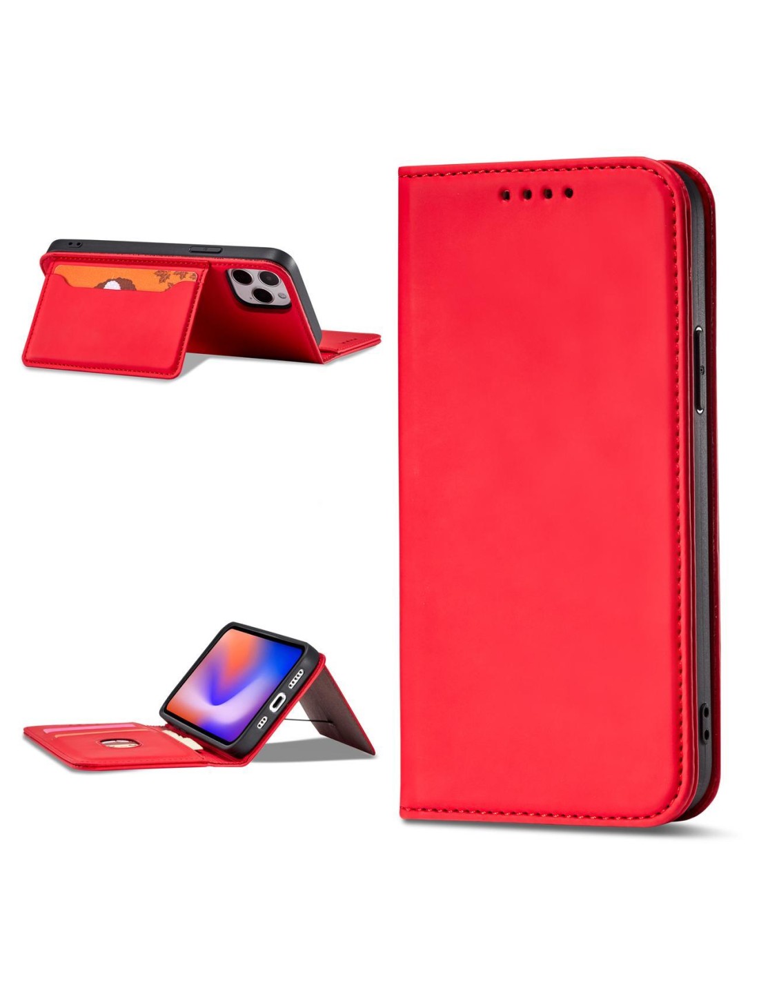 Magnetinis kortelės dėklas iPhone 12, dangtelis, kortelių piniginė, kortelių stovas, raudonas