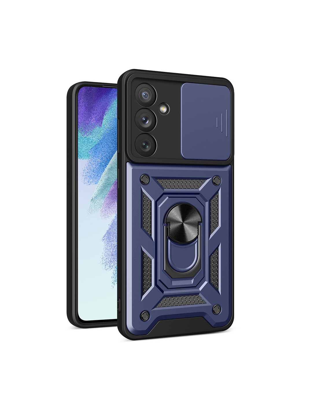 Hibridinis šarvuotas dėklas, skirtas Samsung Galaxy A54 5G iš Hybrid Armor Camshield serijos su mėlynu fotoaparato dangteliu