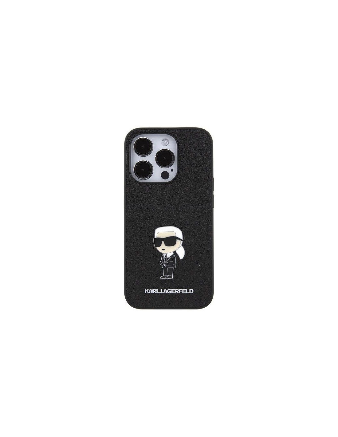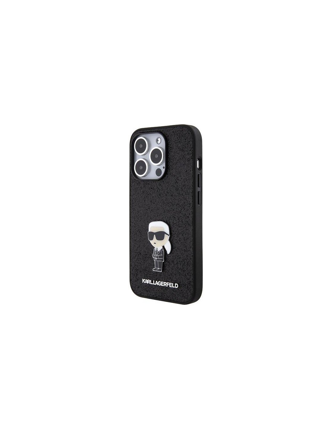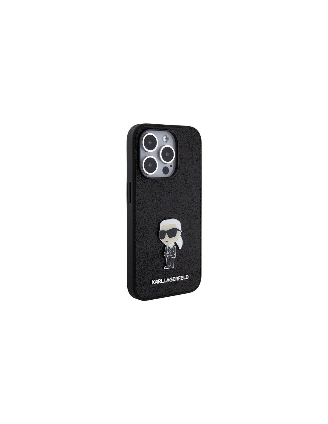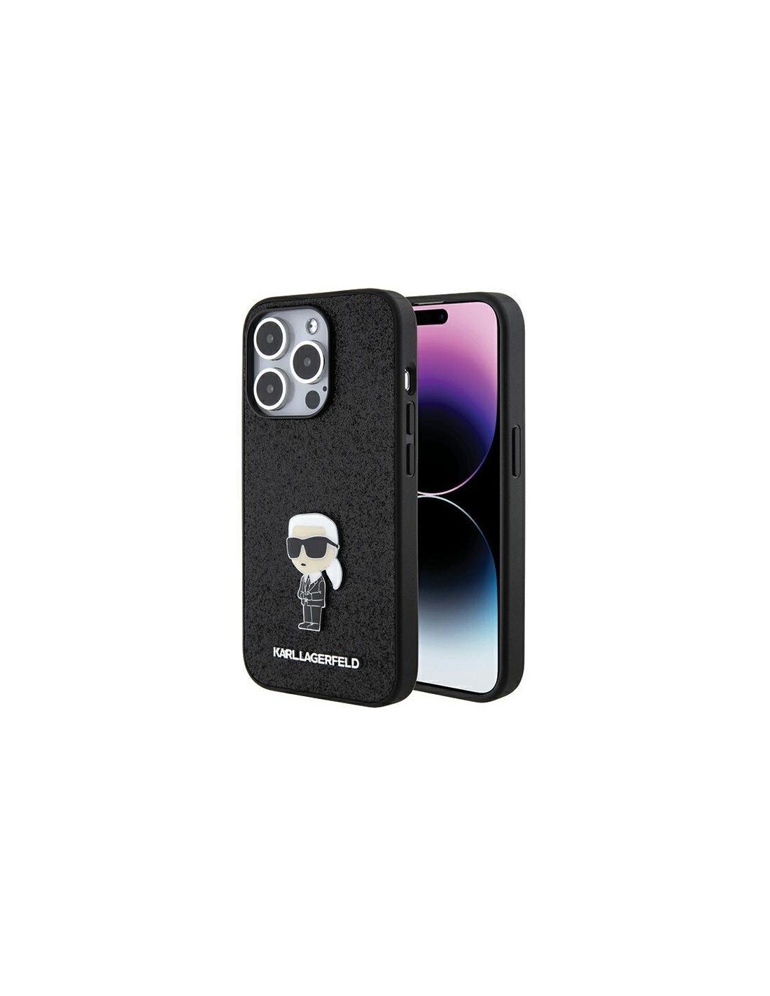 Karl Lagerfeld Fixed Glitter Ikonik Logo Metal Pin Case iPhone 15 Pro Max - juodas