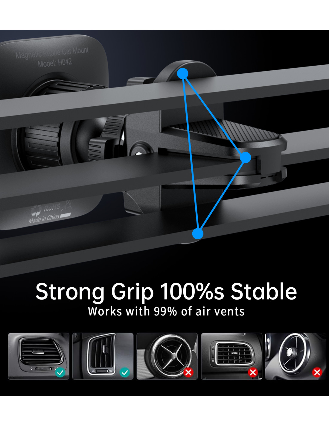 „Choetech H042“ automobilinis laikiklis sukurtas atsižvelgiant į maksimalų komfortą ir saugumą. Dėl tvirto trijų taškų sukibimo ir įmontuotų magnetų jūsų telefonas tvirtai ir saugiai laikysis vietoje. Galimybė telefoną pastatyti bet kokiu kampu, tiek horizontaliai, tiek vertikaliai, leidžia lengvai naudoti navigaciją ar muzikos grotuvą neatitraukiant dėmesio nuo kelio. Paprastas surinkimas ir išardymas daro „Choetech H042“ laikiklį nepaprastai patogų ir intuityvų naudoti.