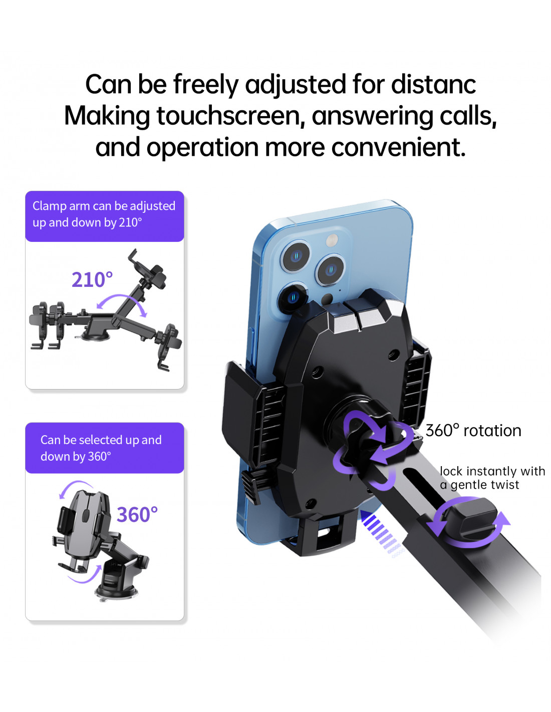 - - Palengvina saugų telefono naudojimą automobilyje. Lengvai reguliuojamas rankos pasvirimas (iki 210 laipsnių) ir telefono sukimas (360 laipsnių).