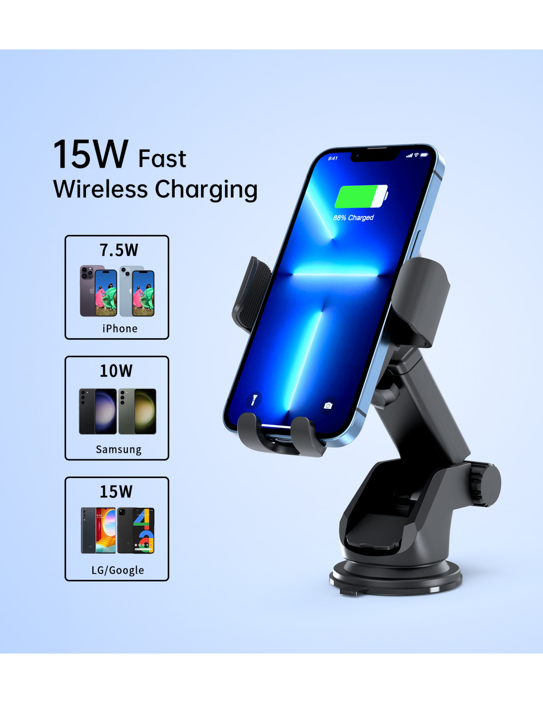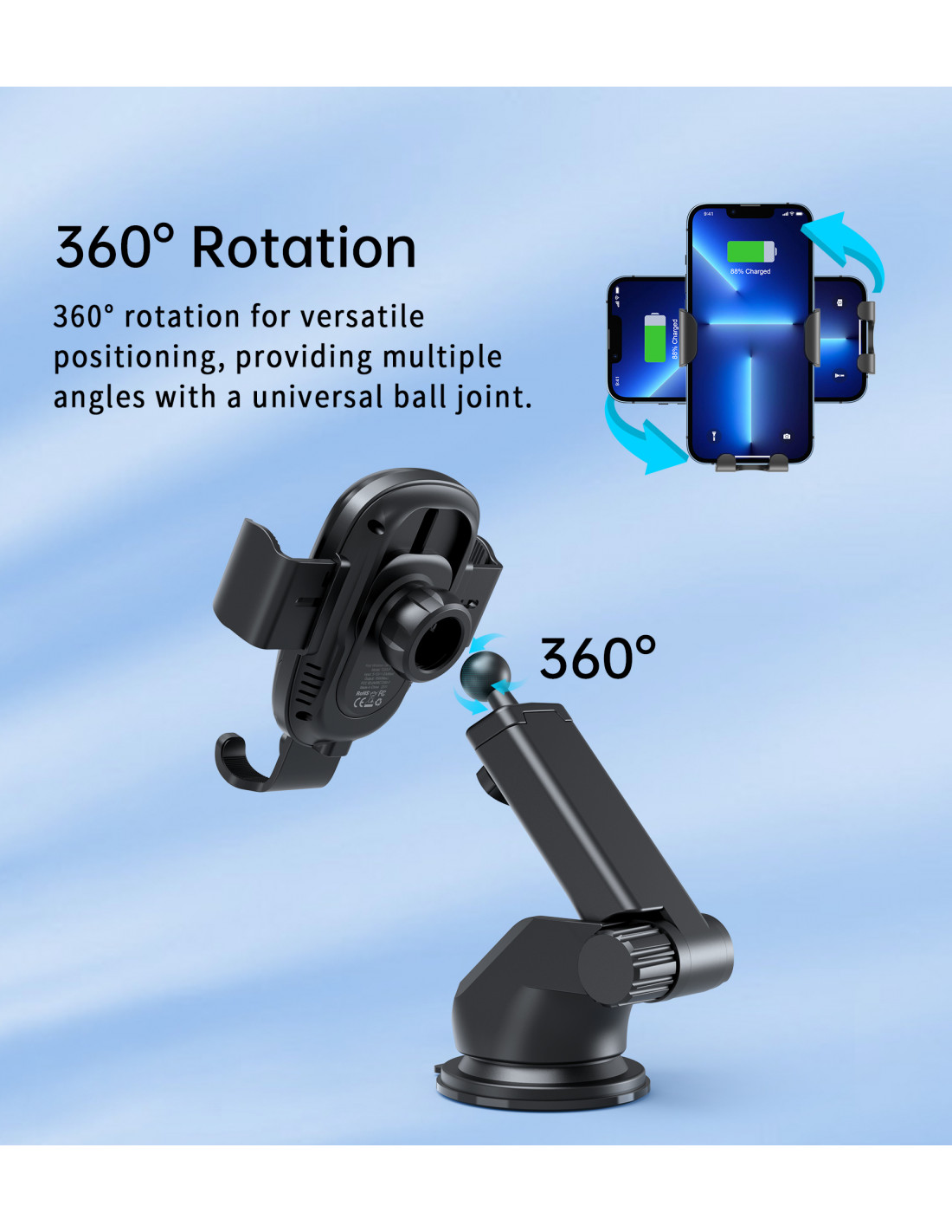 „Gravity“ automobilio laikiklis su 15 W indukciniu įkrovikliu, skirtas vairuotojo kabinai – juodas