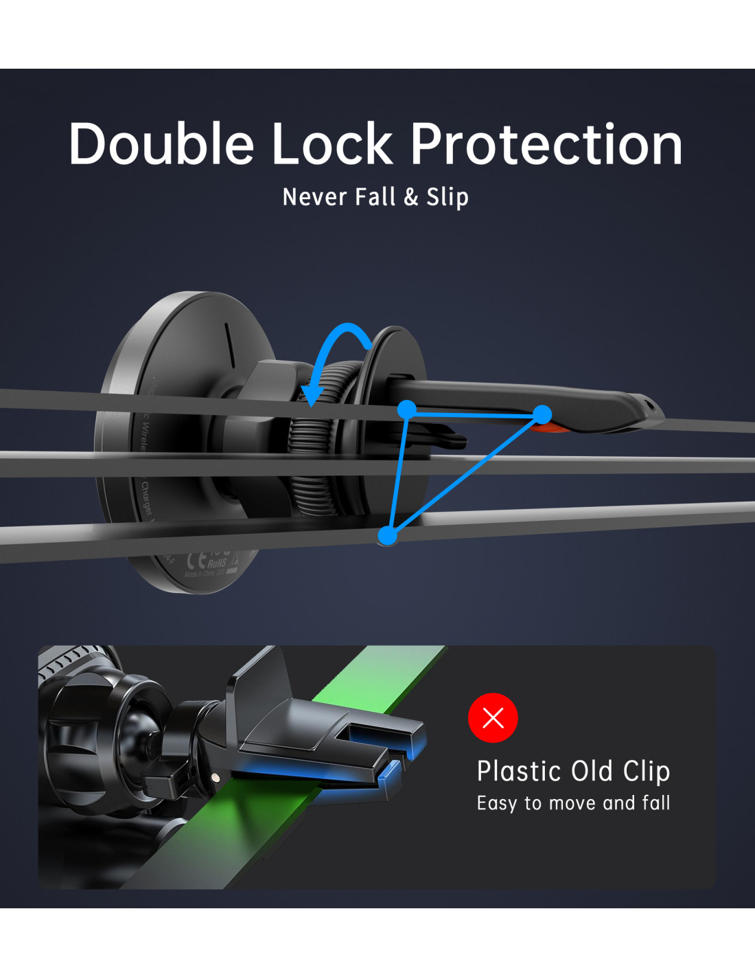 - - Užtikrina maksimalų stabilumą. „Choetech T204-F“ laikiklis užtikrina, kad jūsų telefonas tvirtai laikytųsi vietoje net ir ant nelygaus paviršiaus.