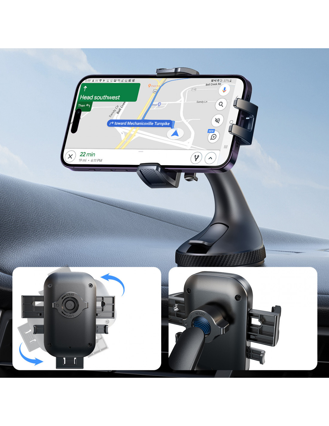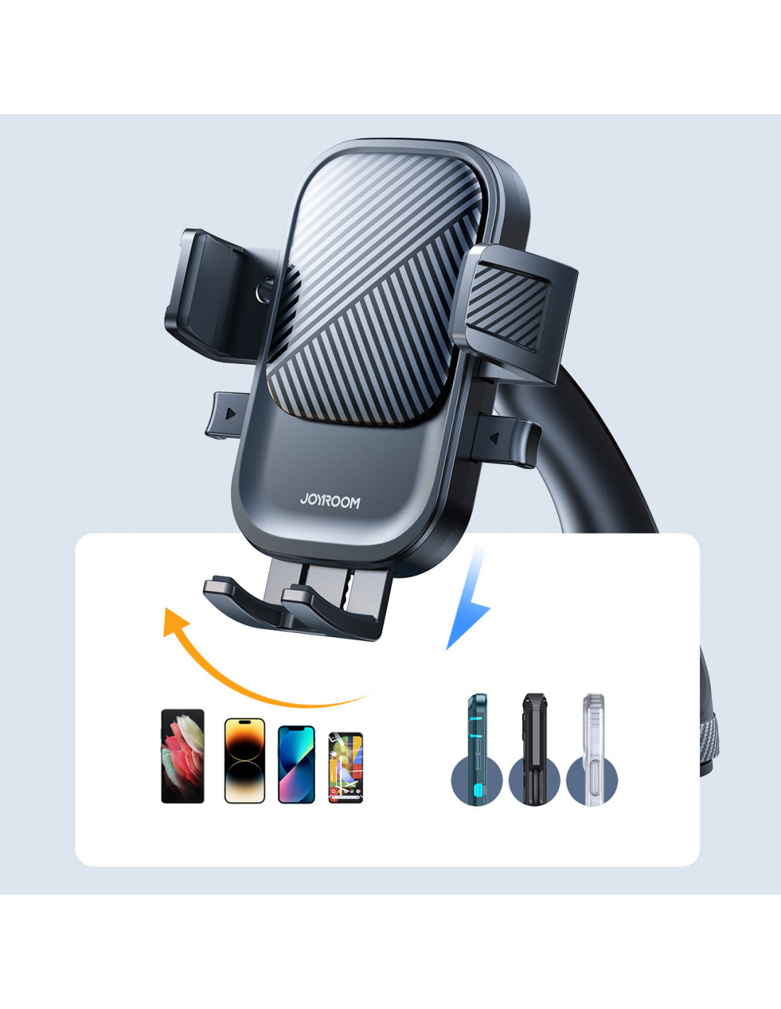 Patogus valdymas viena ranka yra raktas į saugų vairavimą. „Joyroom JR-OK6“ laikiklis leidžia greitai ir lengvai užrakinti bei atlaisvinti telefoną, kad galėtumėte sutelkti dėmesį į kelią.