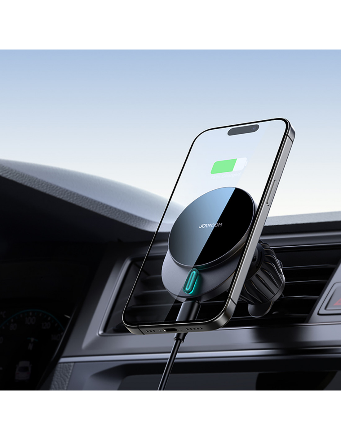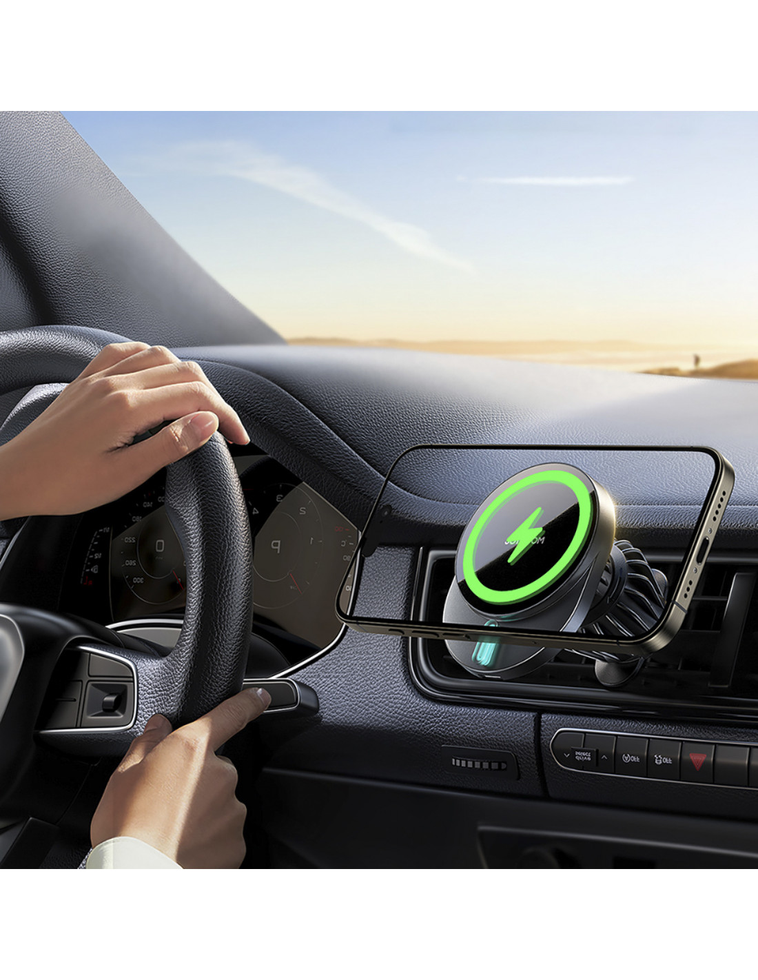 Magnetinis laikiklis „Joyroom JR-ZS409“ su 15 W greito įkrovimo funkcija ir automatiniu magnetiniu išlyginimu užtikrina, kad jūsų telefonas būtų paruoštas naudoti. Dvigubi neodimio magnetai užtikrina saugumą, todėl jums nereikės jaudintis dėl staigių smūgių. Be to, jis gali pasisukti 360 laipsnių kampu, todėl telefoną galite naudoti tiek horizontaliai, tiek vertikaliai.