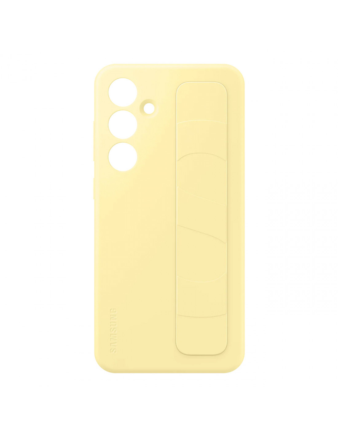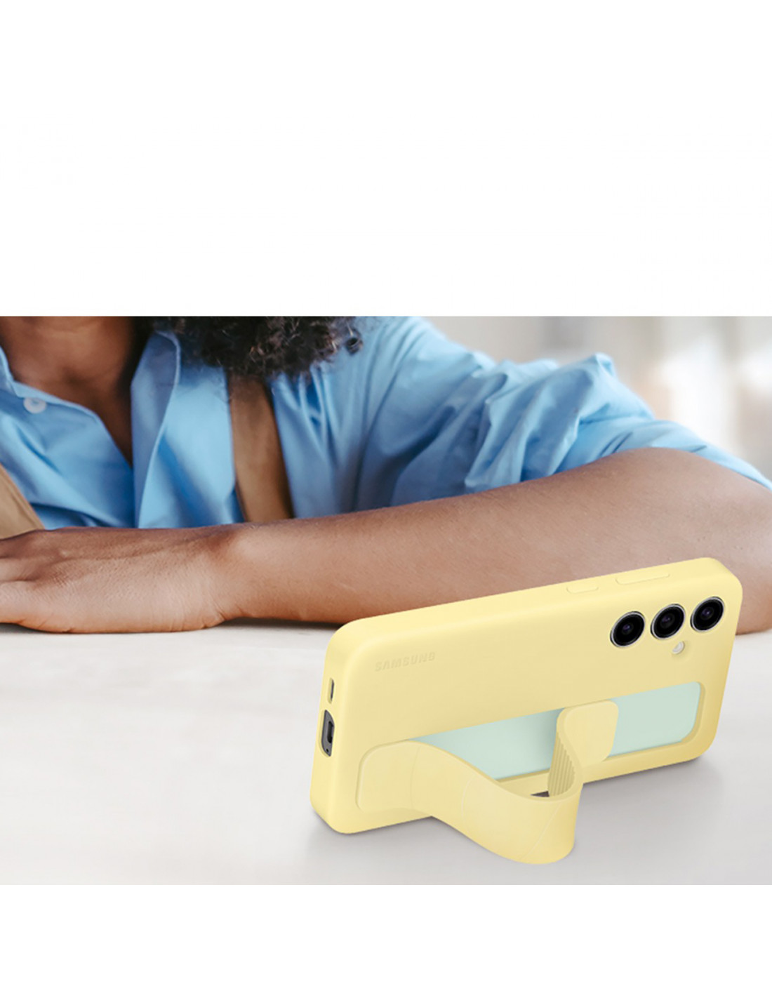 „Samsung Galaxy S24 FE“ stovintis dėklas su rankena ir stovu – geltonas