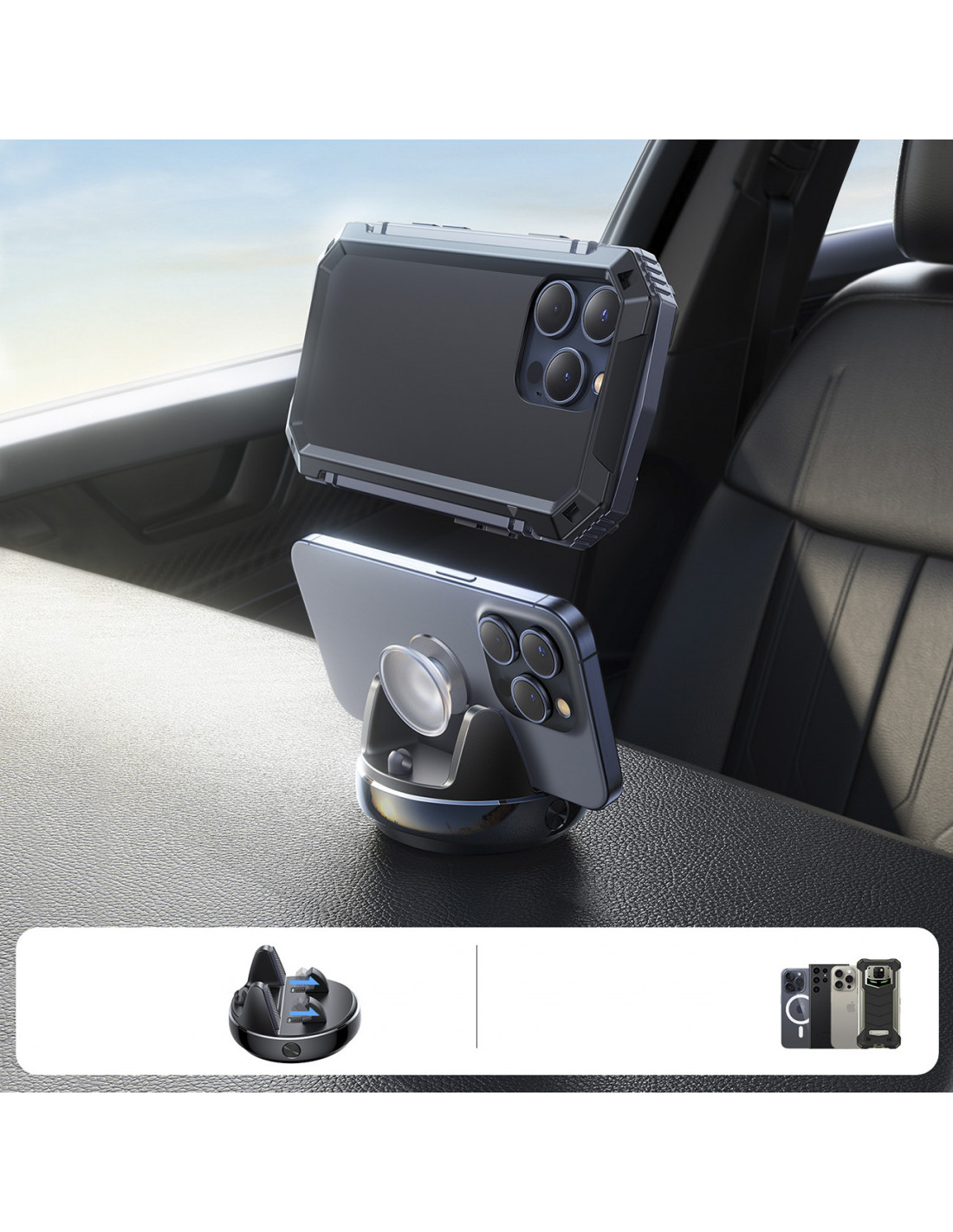 - - Automatinio užrakinimo funkcija: Prisitaiko prie telefono storio (6–16 mm), užtikrindama saugų ir stabilų įrenginio laikymą,