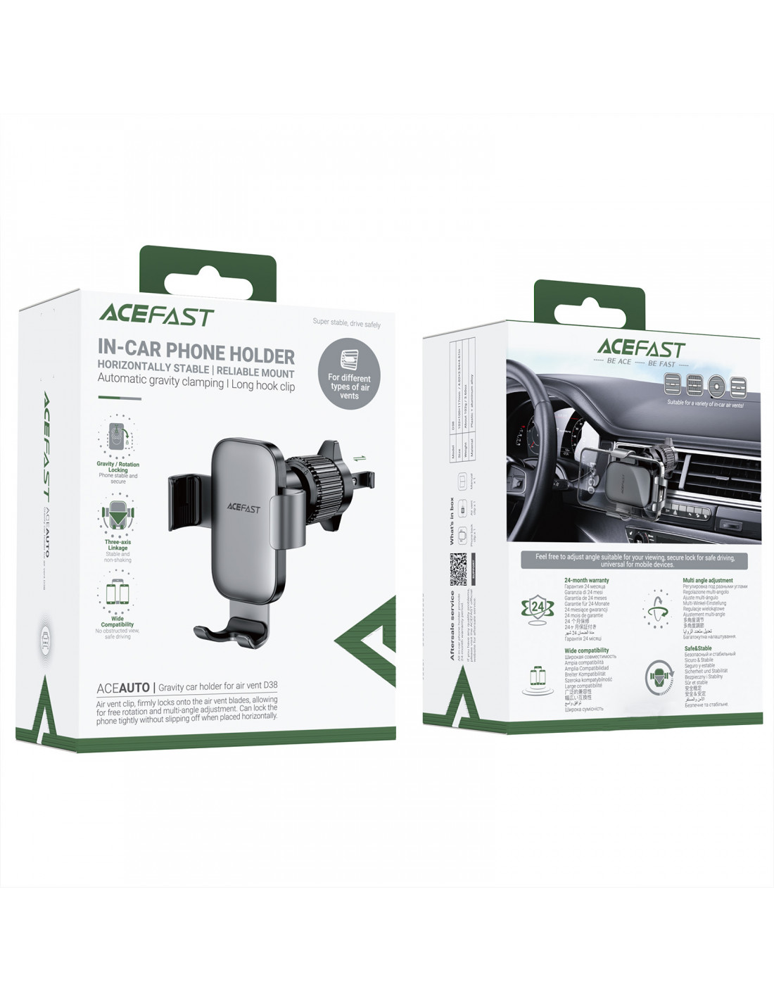 „Acefast D38“ yra sukurtas taip, kad būtų suderinamas su įvairiomis ventiliacijos angomis, todėl jį lengva montuoti įvairiuose automobilių modeliuose. Tvirtas tvirtinimas užtikrina įrenginio stabilumą ir saugumą.
