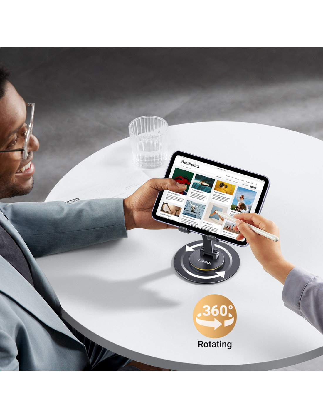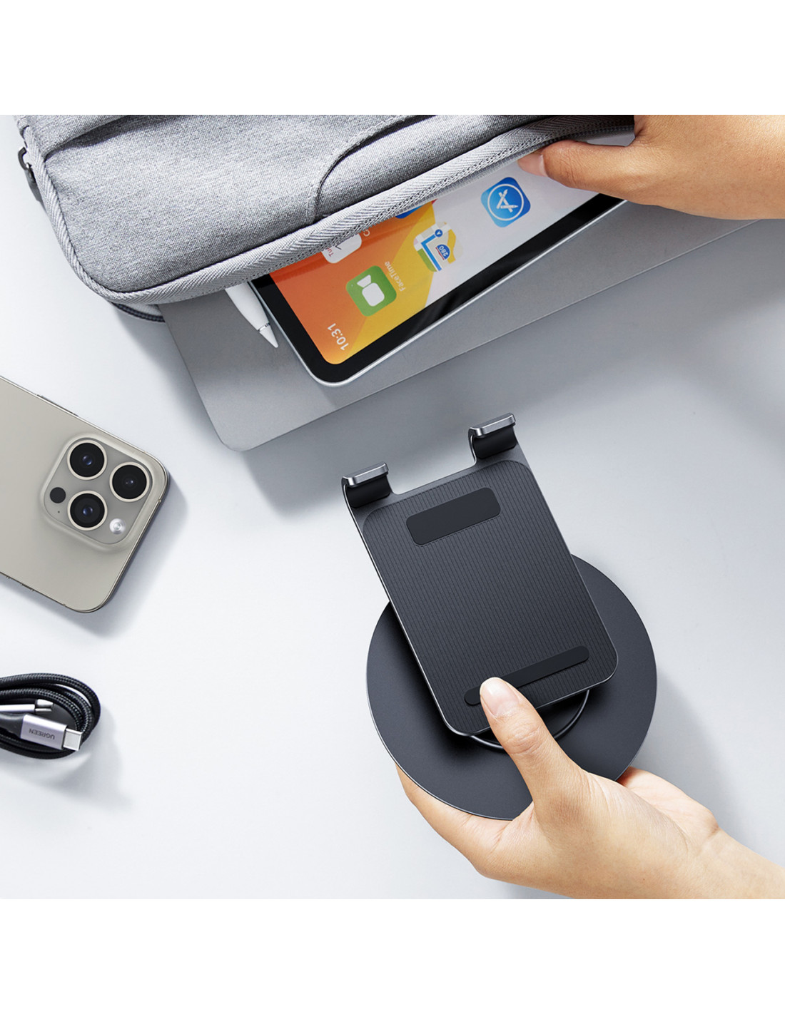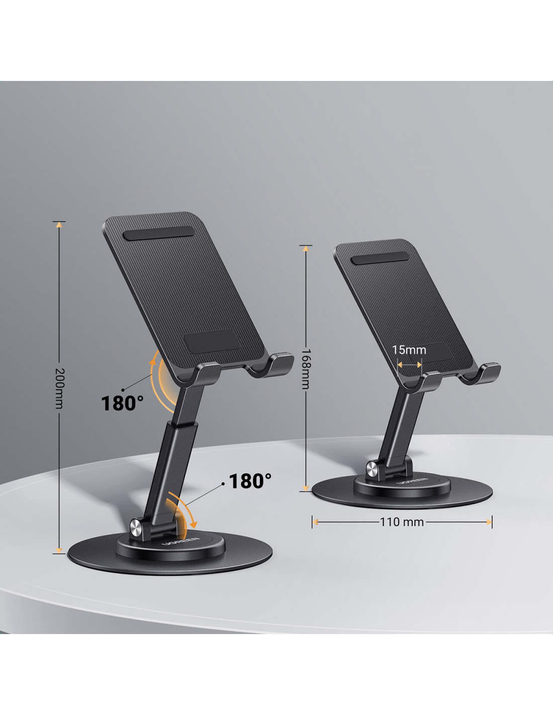Jums nebereikės rūpintis dėl nepatogių žiūrėjimo kampų. „Ugreen LP805“ suteikia visišką laisvę dėl 360 laipsnių sukimosi. Tikslus sukimosi mechanizmas užtikrina sklandų ir stabilų reguliavimą, užtikrindamas, kad įrenginys išliktų pasirinktoje padėtyje. Užtikrinkite patogų telefono naudojimą žiūrint filmus, atliekant vaizdo skambučius ar naudojantis programėlėmis.