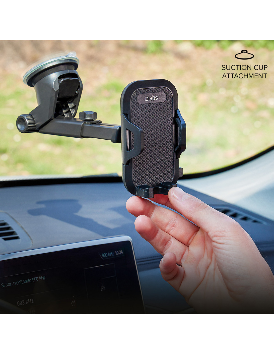 Siurbimo puodelis leidžia laikiklį tvirtai pritvirtinti prie prietaisų skydelio arba priekinio stiklo, užtikrinant maksimalų stabilumą ir saugumą, nepriklausomai nuo vairavimo sąlygų. Dėl to laikiklis idealiai tinka tiek važiavimui mieste, tiek ilgoms kelionėms.
