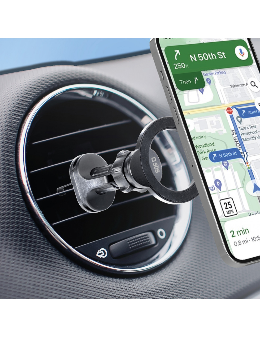„SBS TESUPMAGRING“ išmaniojo telefono laikiklis yra puikus sprendimas vairuotojams, ieškantiems patogaus, tvirto ir universalaus laikiklio. Dėl suderinamumo su „MagSafe“ ir pridedamos metalinės plokštelės įrenginys užtikrina išskirtinį stabilumą bet kokiam išmaniajam telefonui, nepriklausomai nuo prekės ženklo. Patogus spaustukas leidžia greitai pritvirtinti prie bet kokio tipo oro ventiliacijos angos, įskaitant apvalias, o magnetinis pagrindas leidžia lengvai pritvirtinti ir stabiliai laikyti telefoną. 360 laipsnių kampu besisukantis pagrindas leidžia lanksčiai orientuoti ekraną – vertikaliai arba horizontaliai, užtikrinant maksimalų matomumą vairuojant. Kompaktiškas dydis ir tvirta ABS konstrukcija garantuoja patvarumą ir modernią išvaizdą.