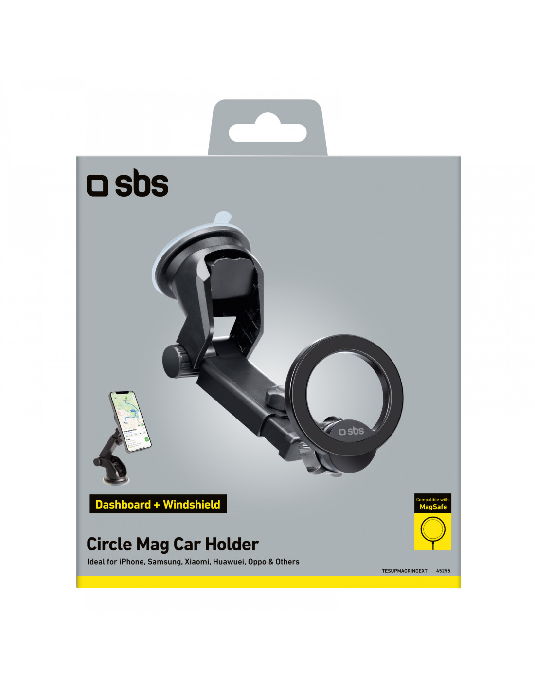 „SBS TESUPMAGRINGEXT“ išmaniojo telefono laikiklis yra puikus pasirinkimas vairuotojams, kurie vairuodami vertina komfortą ir funkcionalumą. Dėl tvirtinimo prie prietaisų skydelio arba priekinio stiklo ir suderinamumo su „MagSafe“, laikiklis siūlo neprilygstamą naudojimo paprastumą. Teleskopinė svirtis, kurios maksimalus ilgis yra 20,5 cm, leidžia pritaikyti išmanųjį telefoną pagal savo poreikius, o magnetinė tvirtinimo sistema užtikrina greitą ir stabilų įrenginio išdėstymą. Pasukama jungtis leidžia visiškai pasukti telefoną 360° kampu, todėl galite pastatyti telefoną vertikaliai arba horizontaliai pagal savo pageidavimus. Taip pat pridedama metalinė plokštelė, leidžianti laikiklį naudoti su kitais įrenginiais be „MagSafe“.