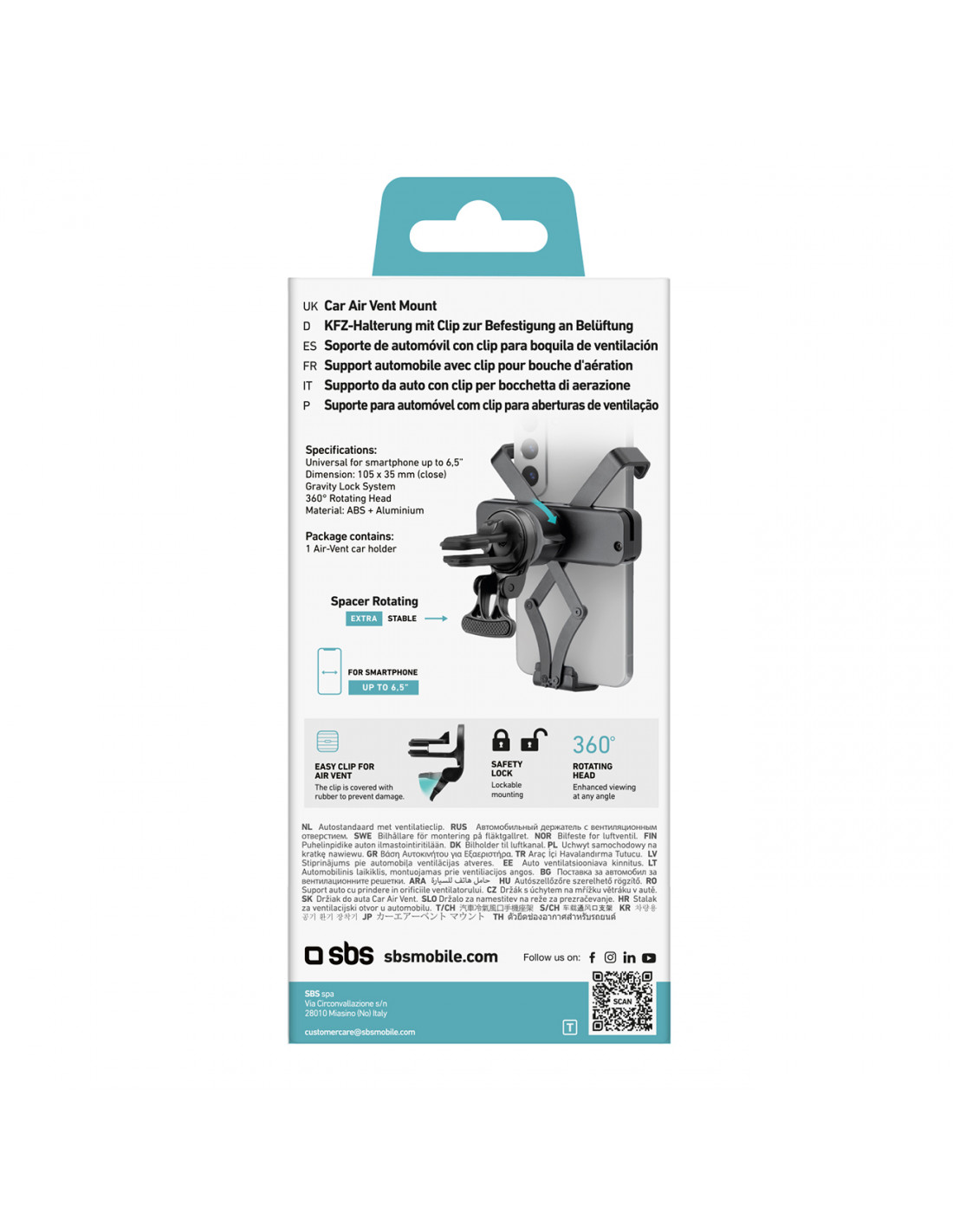 SBS TESUPGRAVSTD išmaniojo telefono laikiklis yra puikus sprendimas vairuotojams, vertinantiems komfortą, saugumą ir modernias technologijas. Dėl automatinio gravitacijos mechanizmo laikiklis tiksliai prisitaiko prie jūsų įrenginio, užtikrindamas stabilumą ir apsaugą vairuojant. Praktiškas tvirtinimo spaustukas su stabilizuojančia svirtimi leidžia lengvai ir saugiai pritvirtinti laikiklį prie oro išleidimo angos. Pilna 360° sukimosi funkcija leidžia laisvai reguliuoti telefono padėtį pagal savo poreikius. Elegantiškas dizainas, patvarios medžiagos ir suderinamumas su dauguma išmaniųjų telefonų iki 6,5 colio paverčia šį gaminį puikiu bet kurio automobilio aksesuaru. Šis sprendimas sujungia paprastą naudojimą ir išskirtinį funkcionalumą.