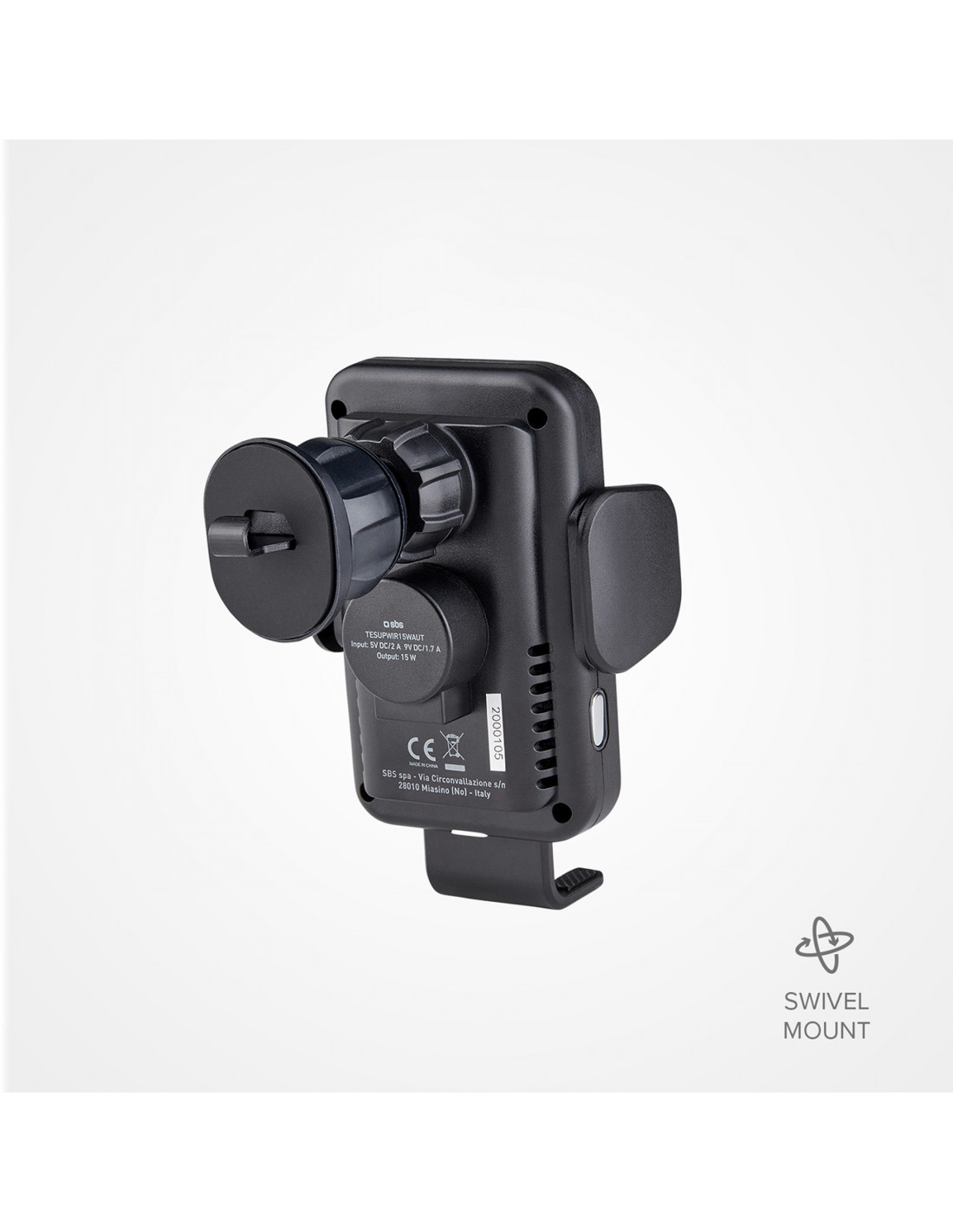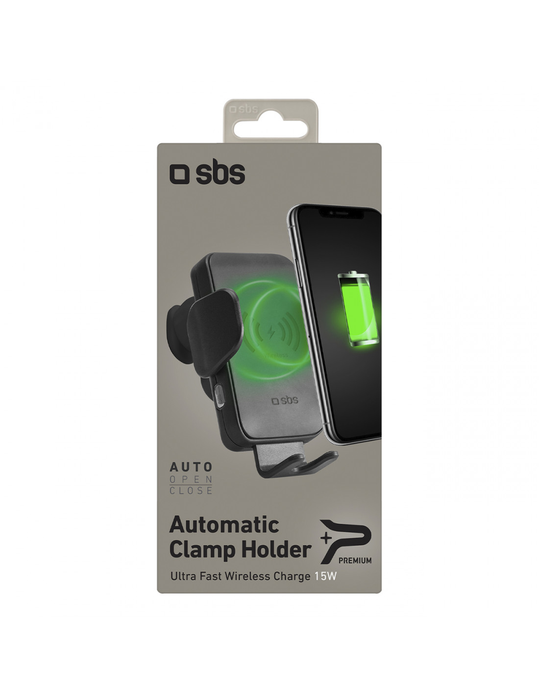 SBS TESUPWIR15WAUT laikiklis turi indukcinę atidarymo ir uždarymo sistemą, kuri veikia automatiškai aptikus išmanųjį telefoną. Tai leidžia greitai ir intuityviai valdyti laikiklį viena ranka.