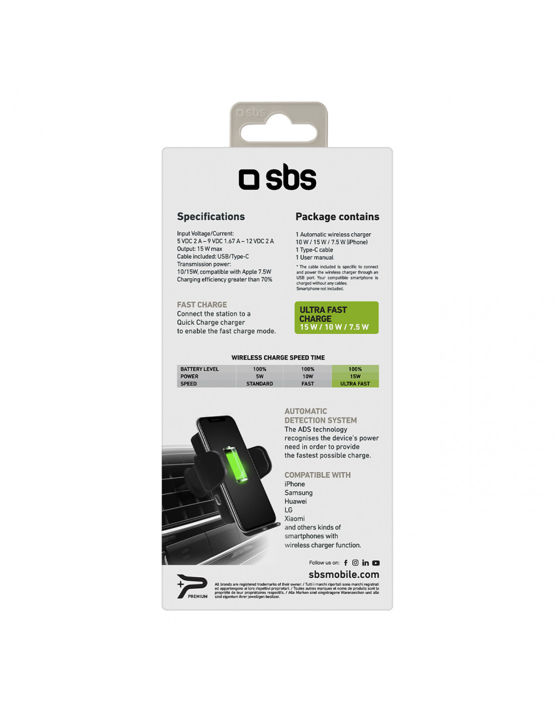 Pristatome SBS TESUPWIR15WAUT išmaniojo telefono laikiklį – tobulą sprendimą kiekvienam vairuotojui. Automatinio atidarymo ir uždarymo sistema, 15 W belaidžiu įkrovimu ir ADS technologija užtikrina komfortą, saugumą ir greitą jūsų įrenginio įkrovimą. Laikiklis lengvai pritvirtinamas prie oro išleidimo angos, užtikrinant stabilumą ir optimalią išmaniojo telefono padėtį. Integruotas indukcinis jutiklis leidžia lengvai valdyti įrenginį viena ranka, o papildoma energija, kaupiama kondensatoriuje, leidžia įrenginiui toliau veikti net ir išjungus variklį.